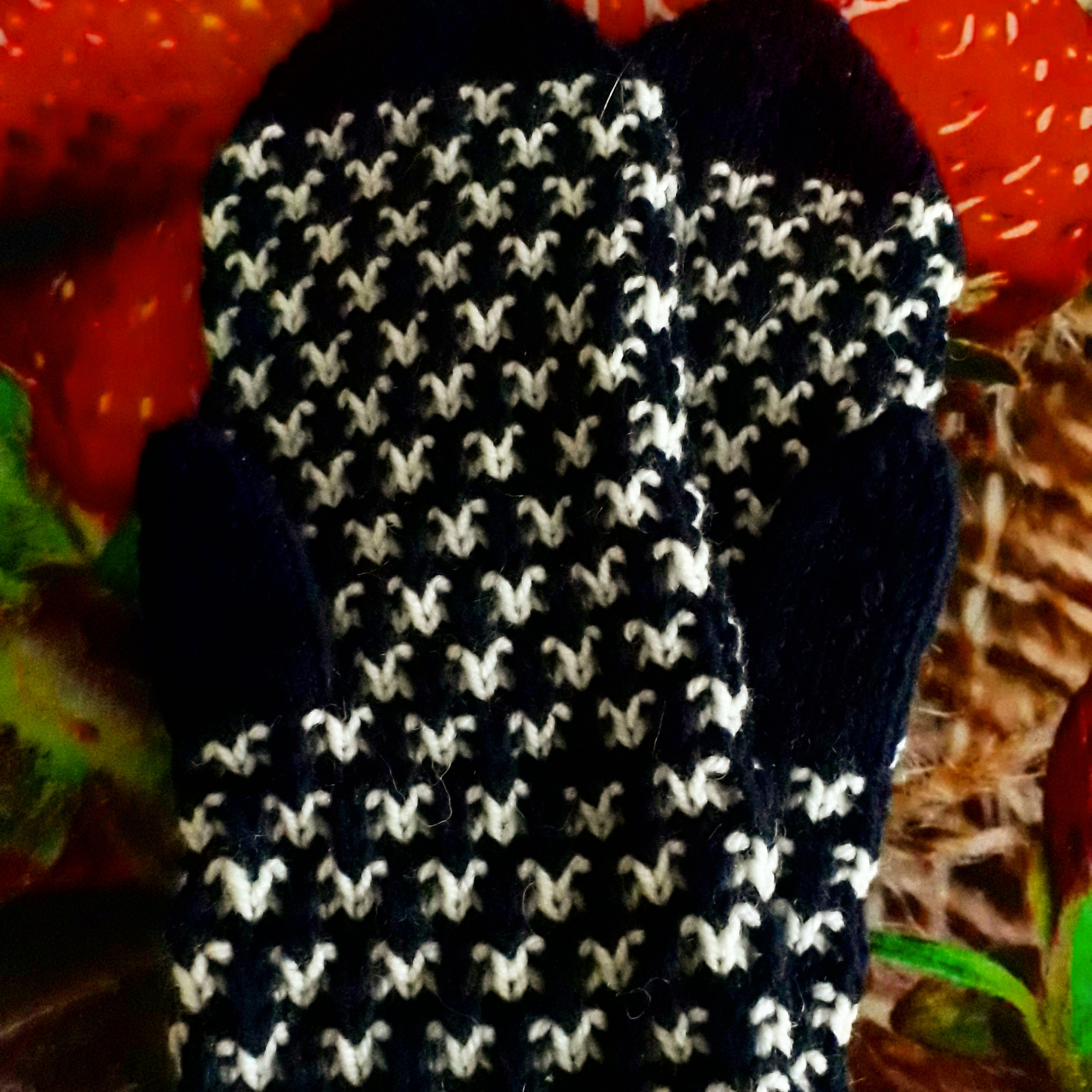 варежки ленивым жаккардовым рисунком связаны.Полезный подарок любимым.