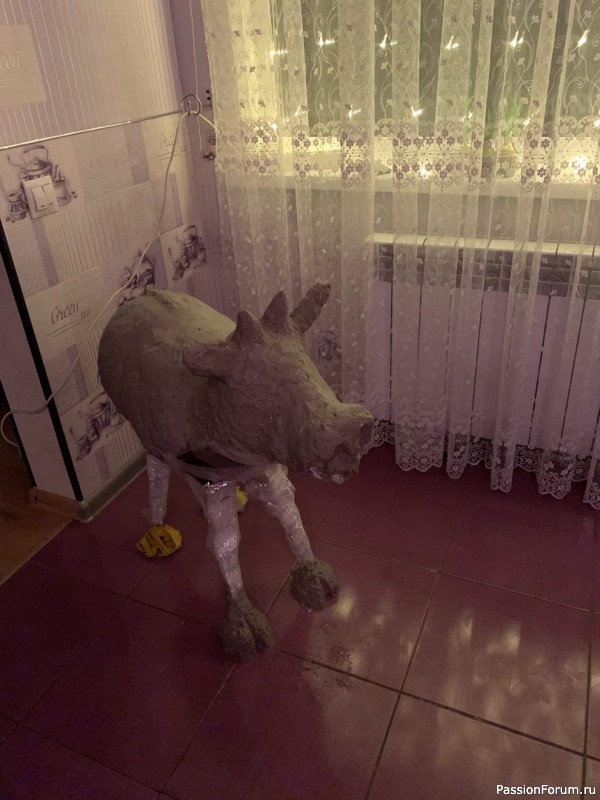 Какие вы все молодцы!!! Бык точно как настоящий!!! Только вот копыта у него так и остались белые? На первом фото чуть-чуть видно, что вроде как коричневатые!!! На участке он поселится и будет вам счастье!!! Удачи!!!