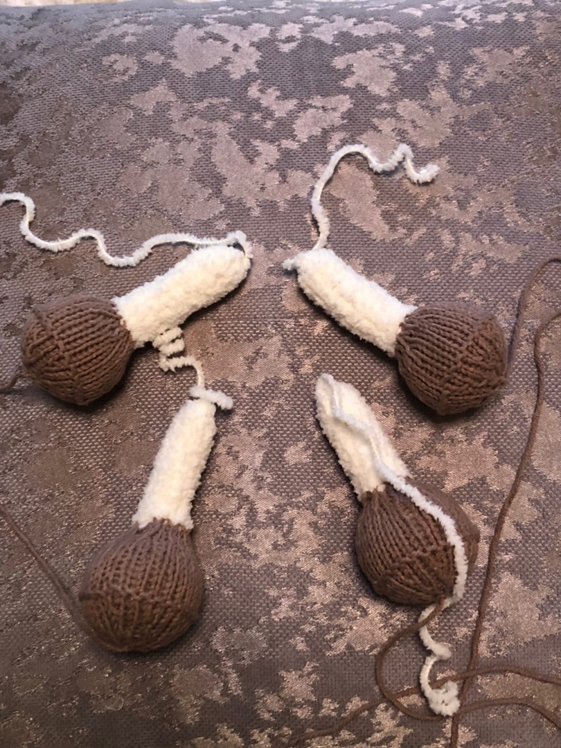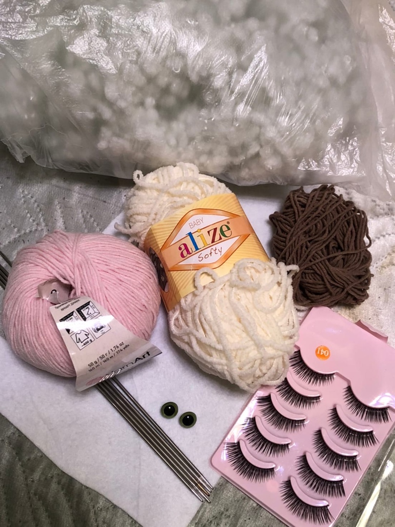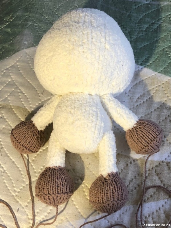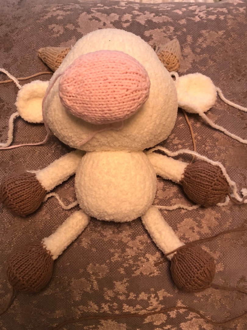 все детали пришиты, утяжки на копытцах сделаны, приступаю к оформлению мордочки.