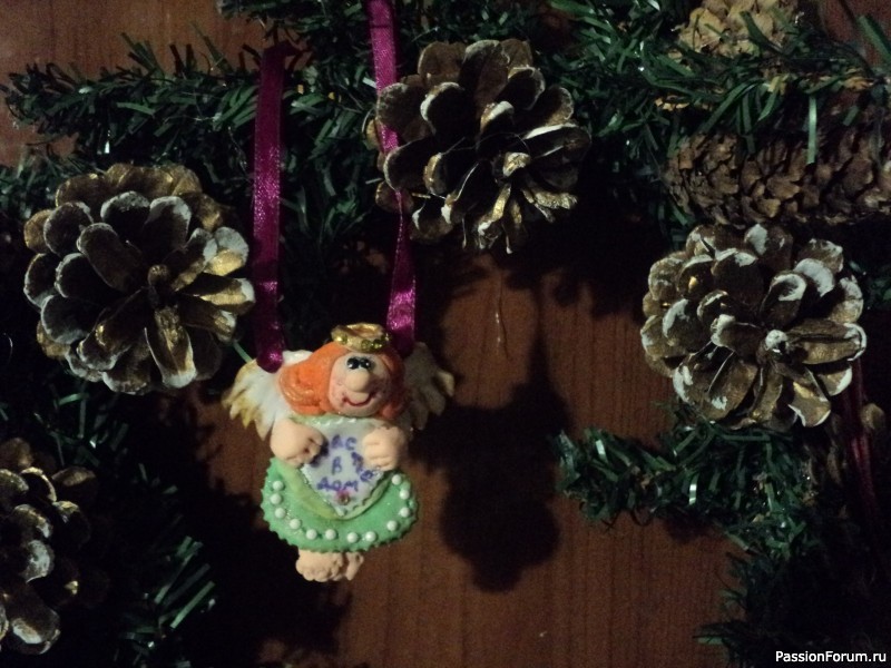 Сделан из полимерной, запекаемой глины «Артефакт» на проволочном каркасе. Волосы и крылышки из шерсти.
