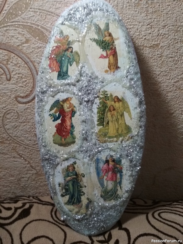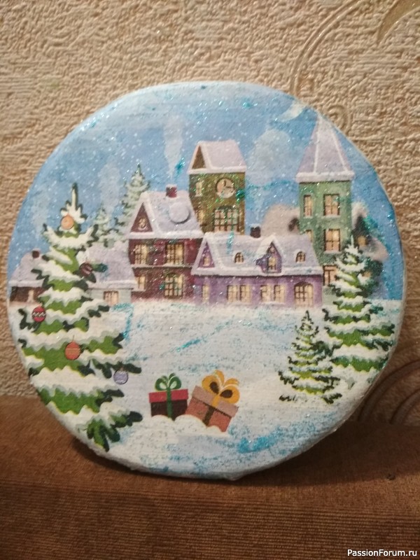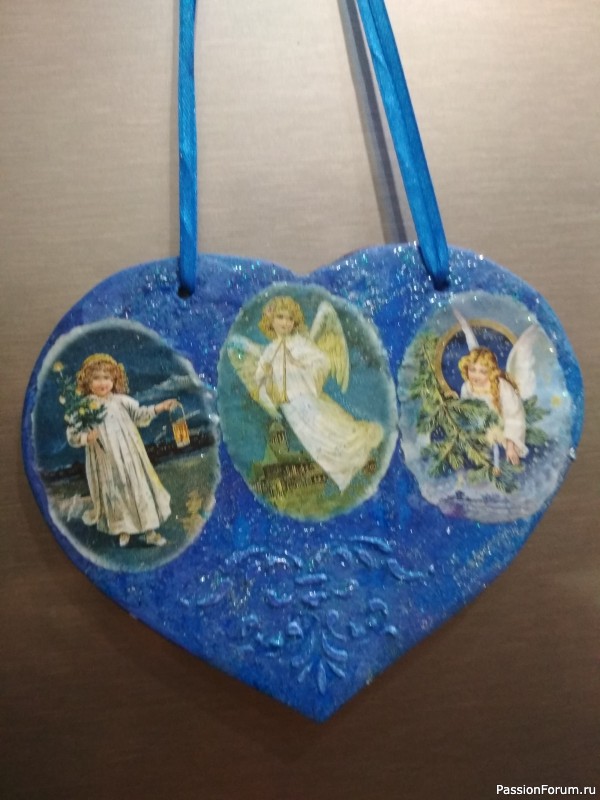 Вот еще игрушки Новогодние! Заготовки из фанеры,досочек.Декупажные карты,жидкие блестки,глиттер,краски акрил.,ленточки,трафареты.