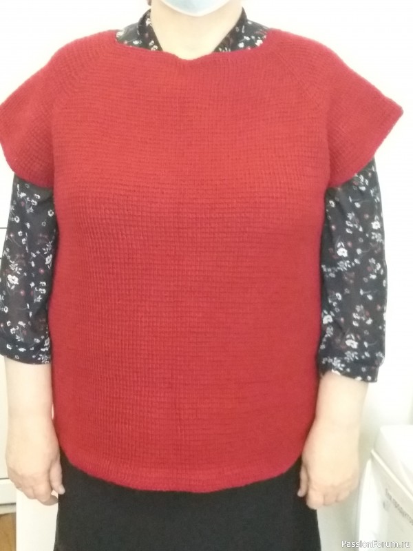 Это безрукавка вишнёвого цвета из тех же ниток.