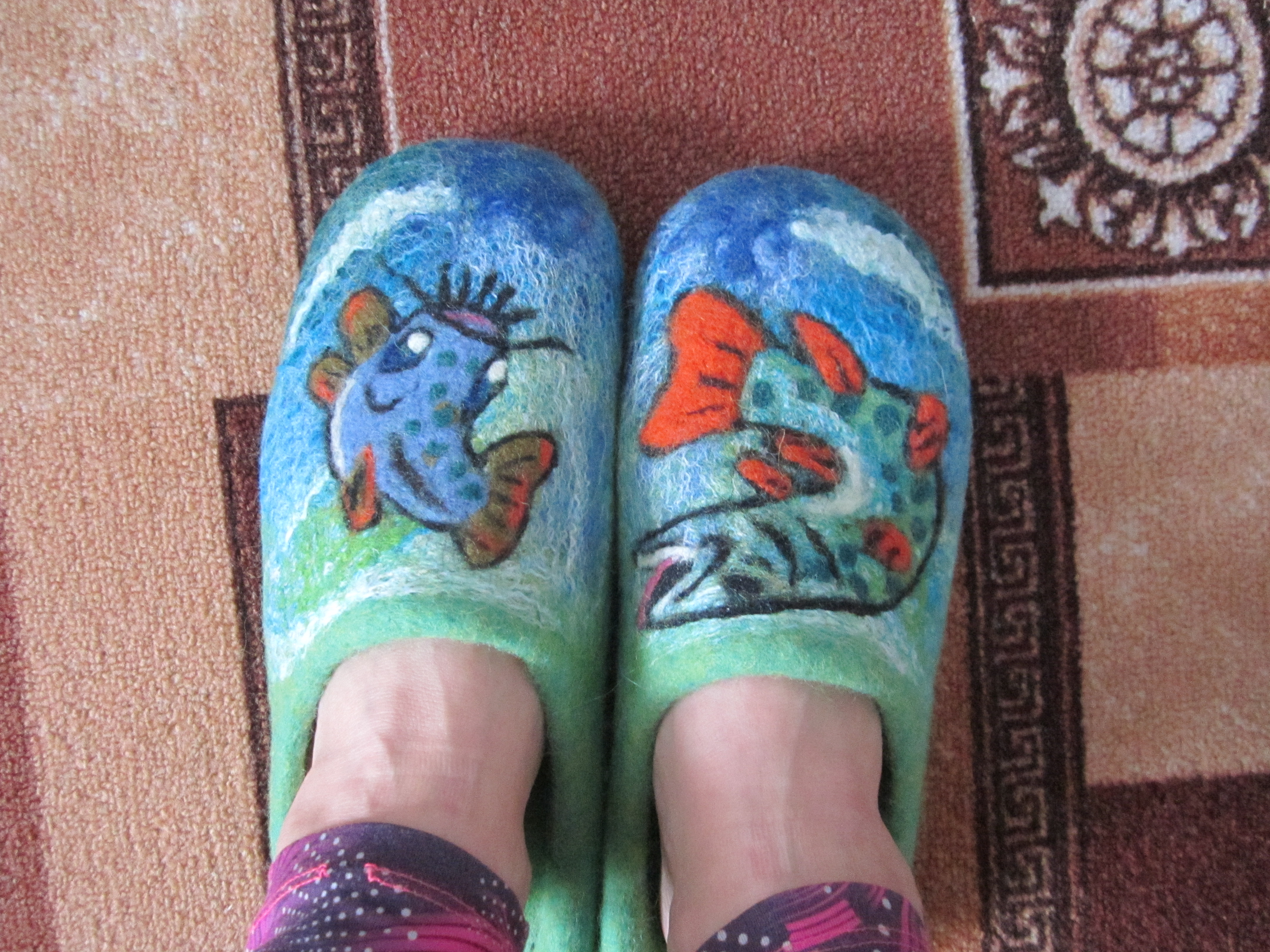 Хороши тапки! И рисунки шикарные! Из какой шерсти сваляны?