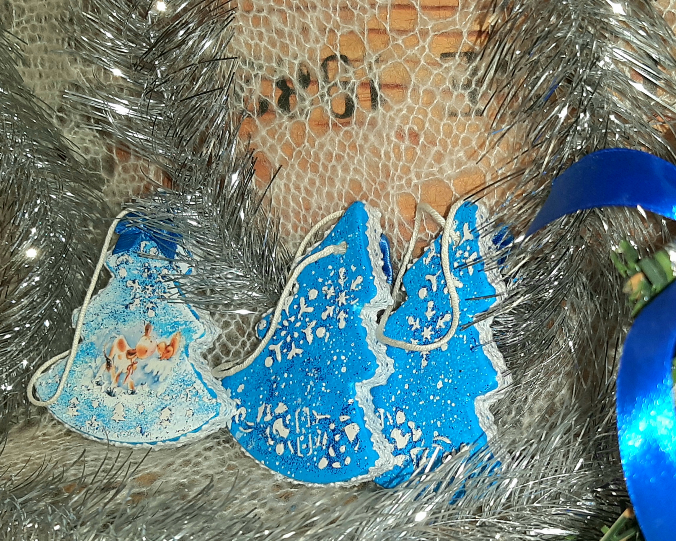 Ёлочки небольшие, где-то см 7 в высоту. Я тоже переживала, что тяжеловаты будут для еловых веток, но нет, вышли вполне себе хорошего веса, чуть-чуть тяжелее деревянных.