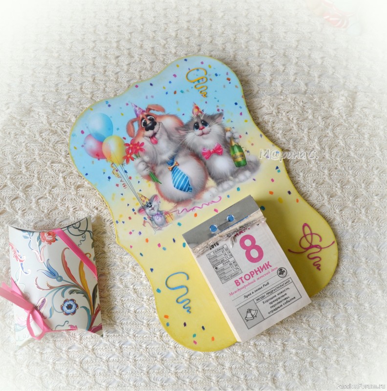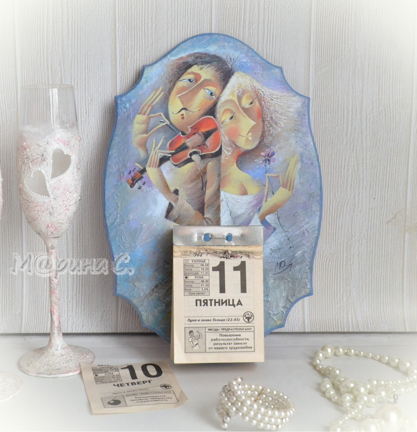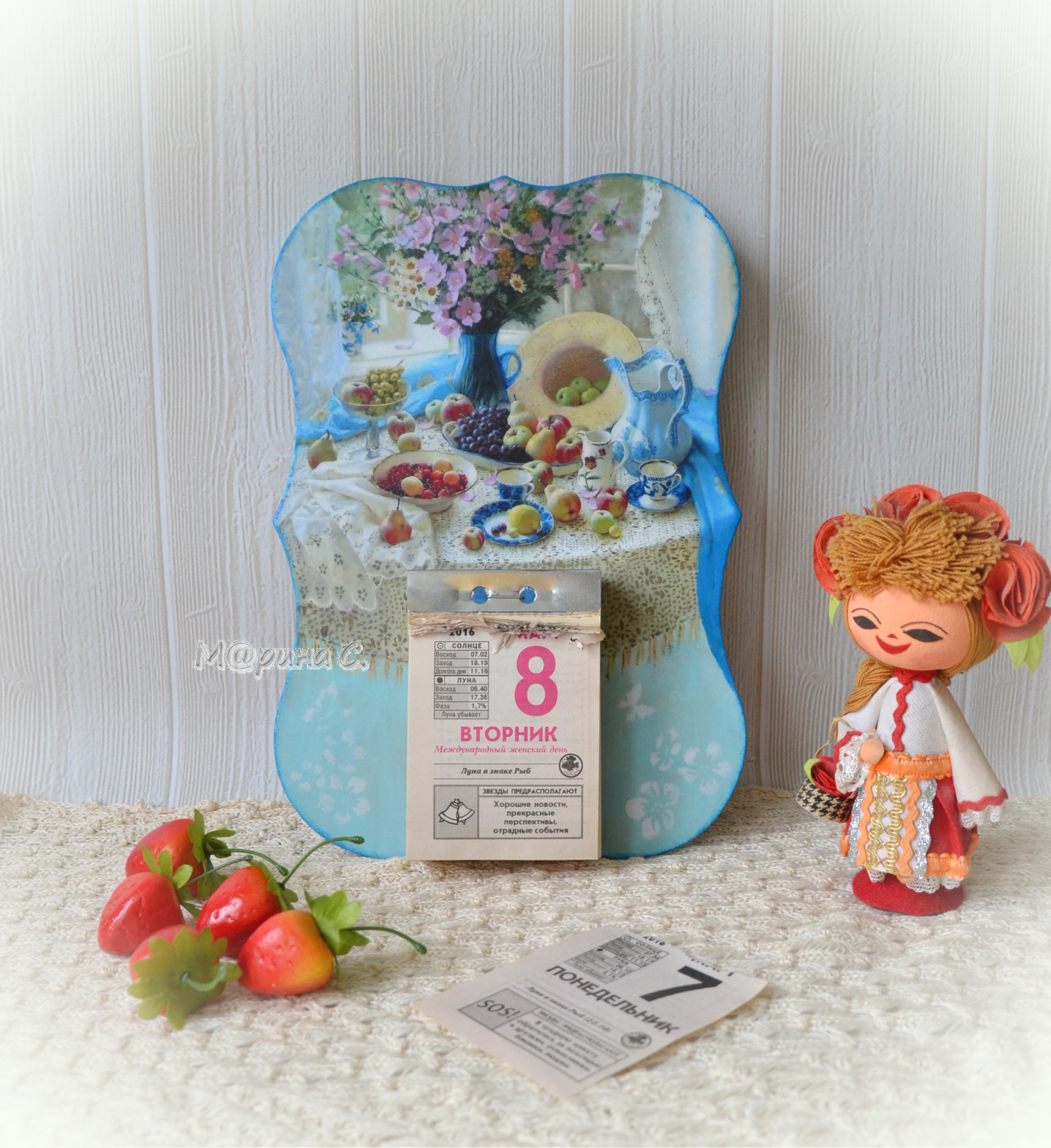 Ну и пусть кому-то не нравится. А нам нравится. Много лет назад на ярмарке мастеров в Сокольниках я купила вот такую подставочку под календарь и с тех пор пользуемся. А Ваши такие нарядные