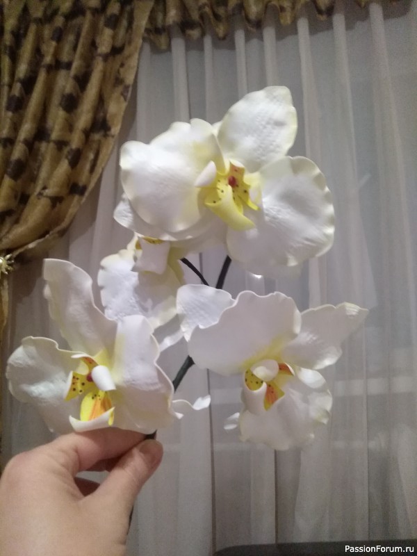 ), Вы знаете, что цветы я делаю из изолона и фоамирана. Ничего нового не освоила) Раньше были больше пионы, розы, а вот сейчас орхидеи, прекрасные цветы! Топик дополню. Приятного Вам дня