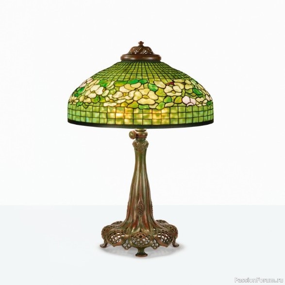 Настольная лампа "Banded Dogwood", около 1905 г., цоколь "Кружева королевы Анны", Tiffany Studios