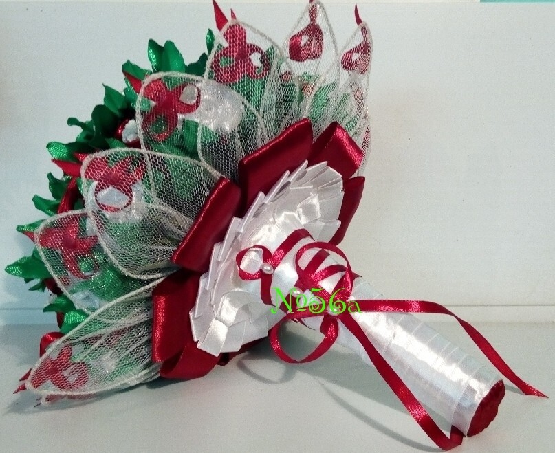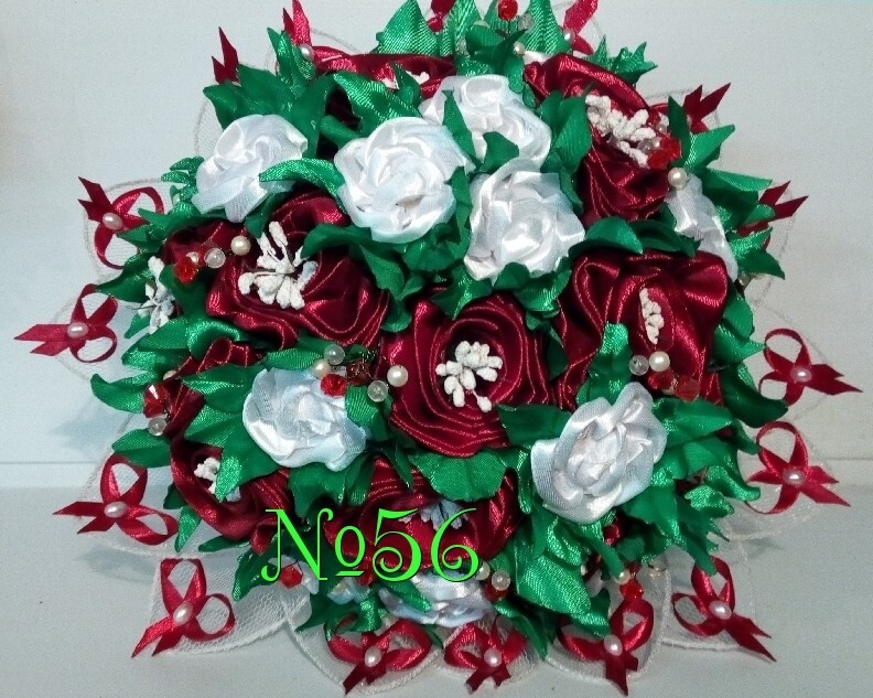 Букет-дублер из атласных лент с использованием бусен, бисера. Возможен повтор в любом цвете.