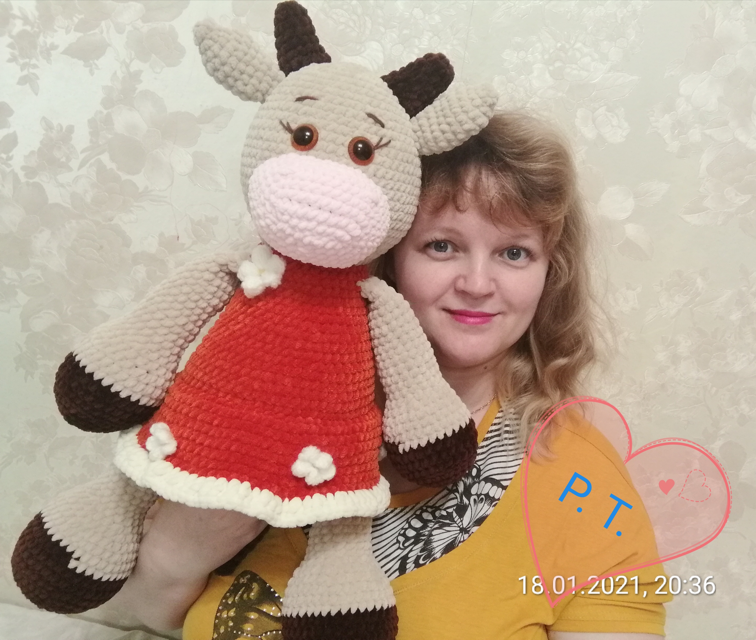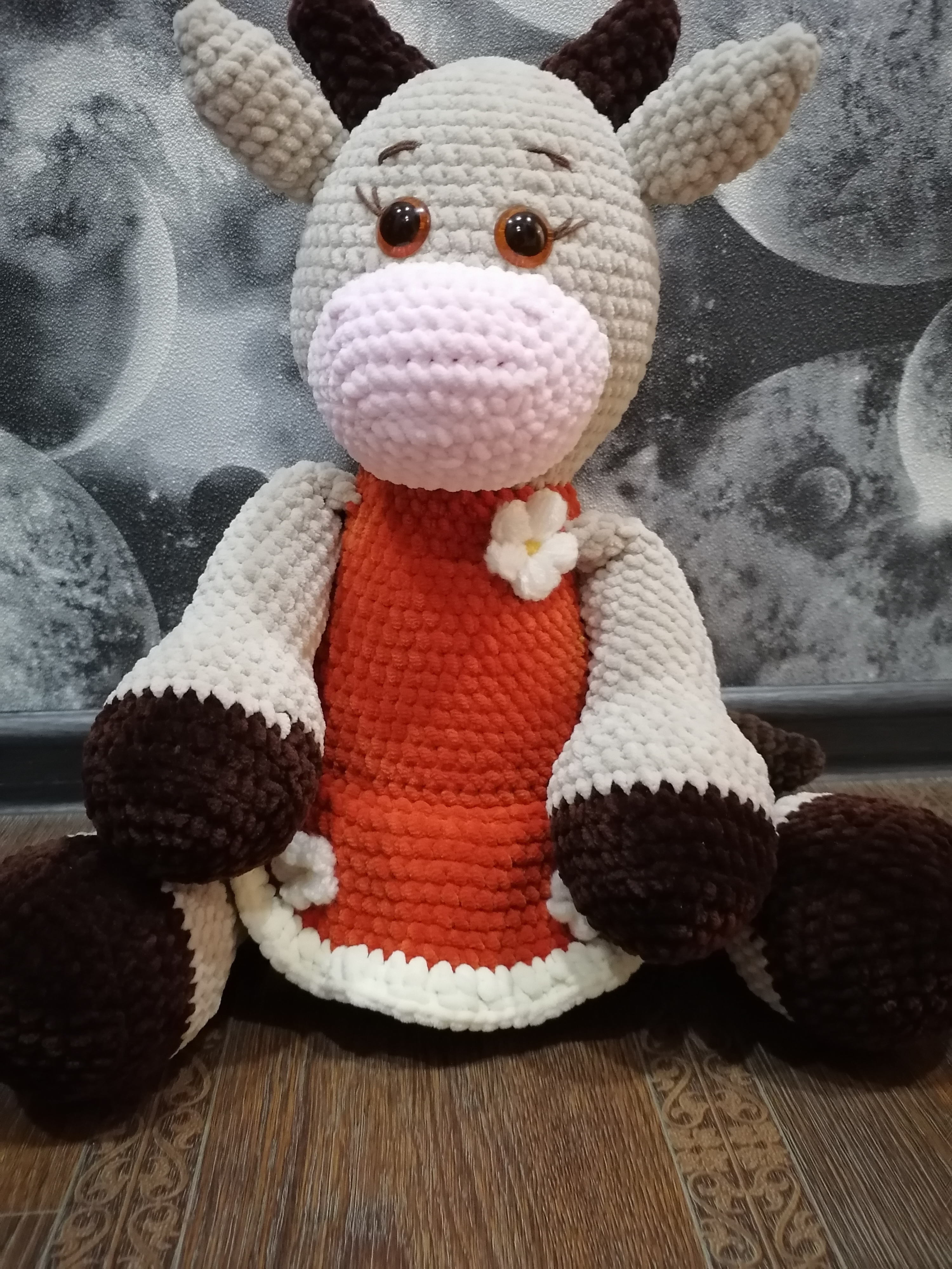 Вот такая получилась коровка. Честно, очень жаль было с ней и расставаться. От вязания игрушек получаю только удовольствие.