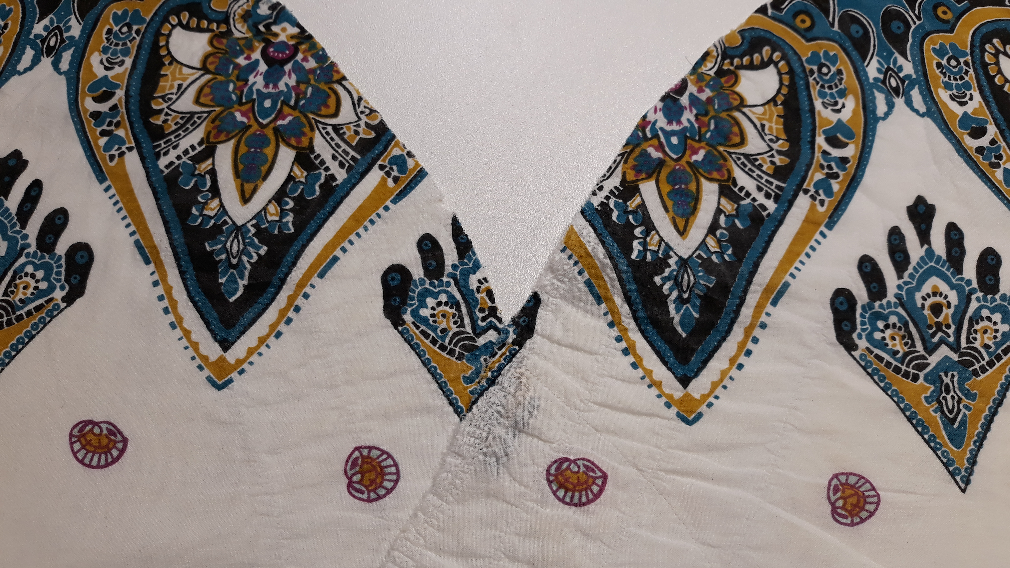 Тут видно отверстие,через него я вывернула на лицо. Не стала края настрачивать. Не хотела делать прорубаемость ткани.