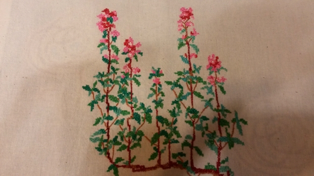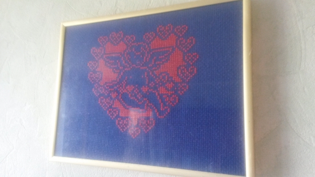 В конце прошу вашего совета - вот нашла свою вышивку, лет в 12-13 вышивала - на льняной ткани, с неравномерным переплетением и т.д. Крестики конечно - ах, но она мне дорога... Посоветуйте как ее оформить.. Кроме как вставить в рамку...