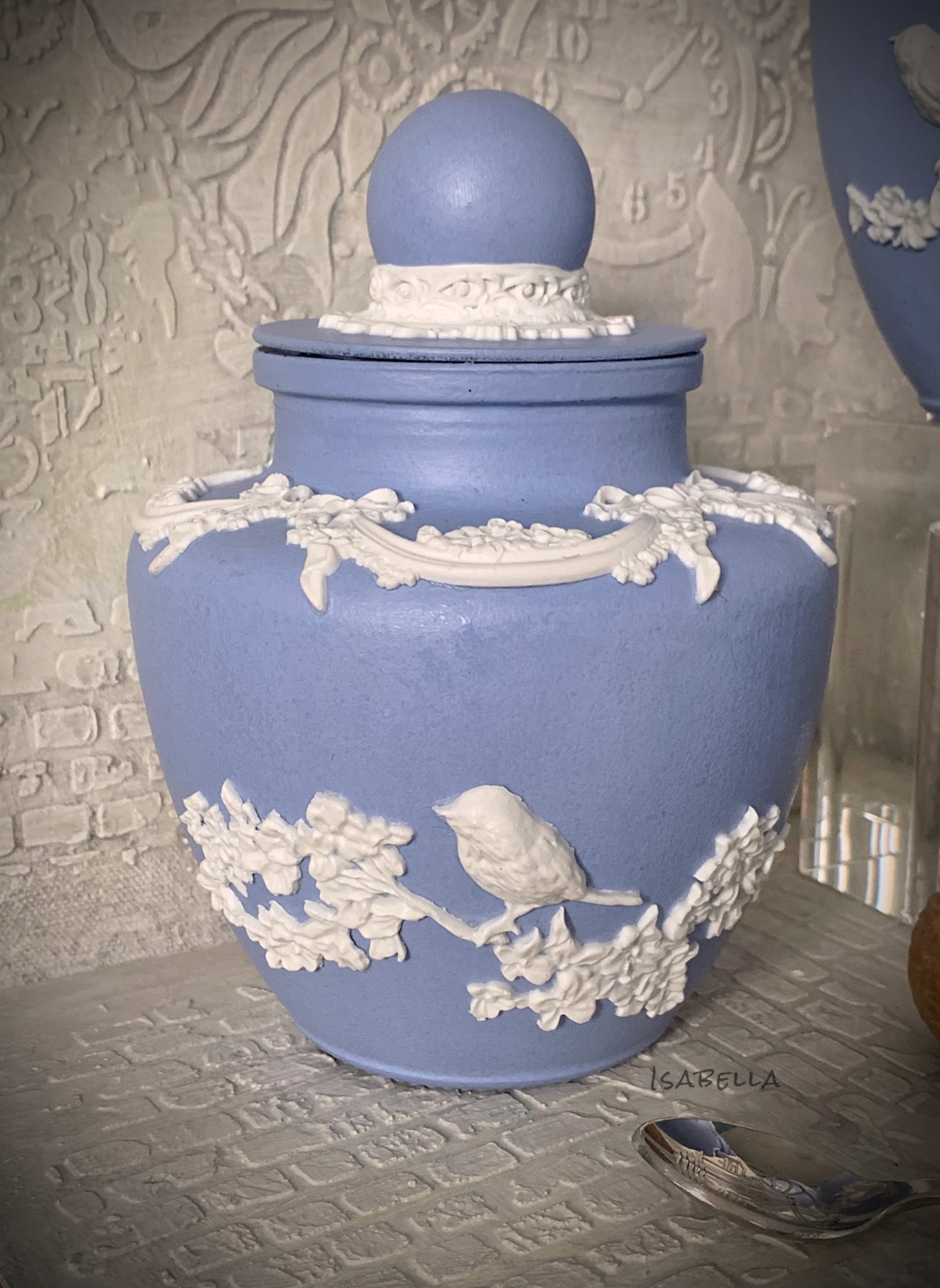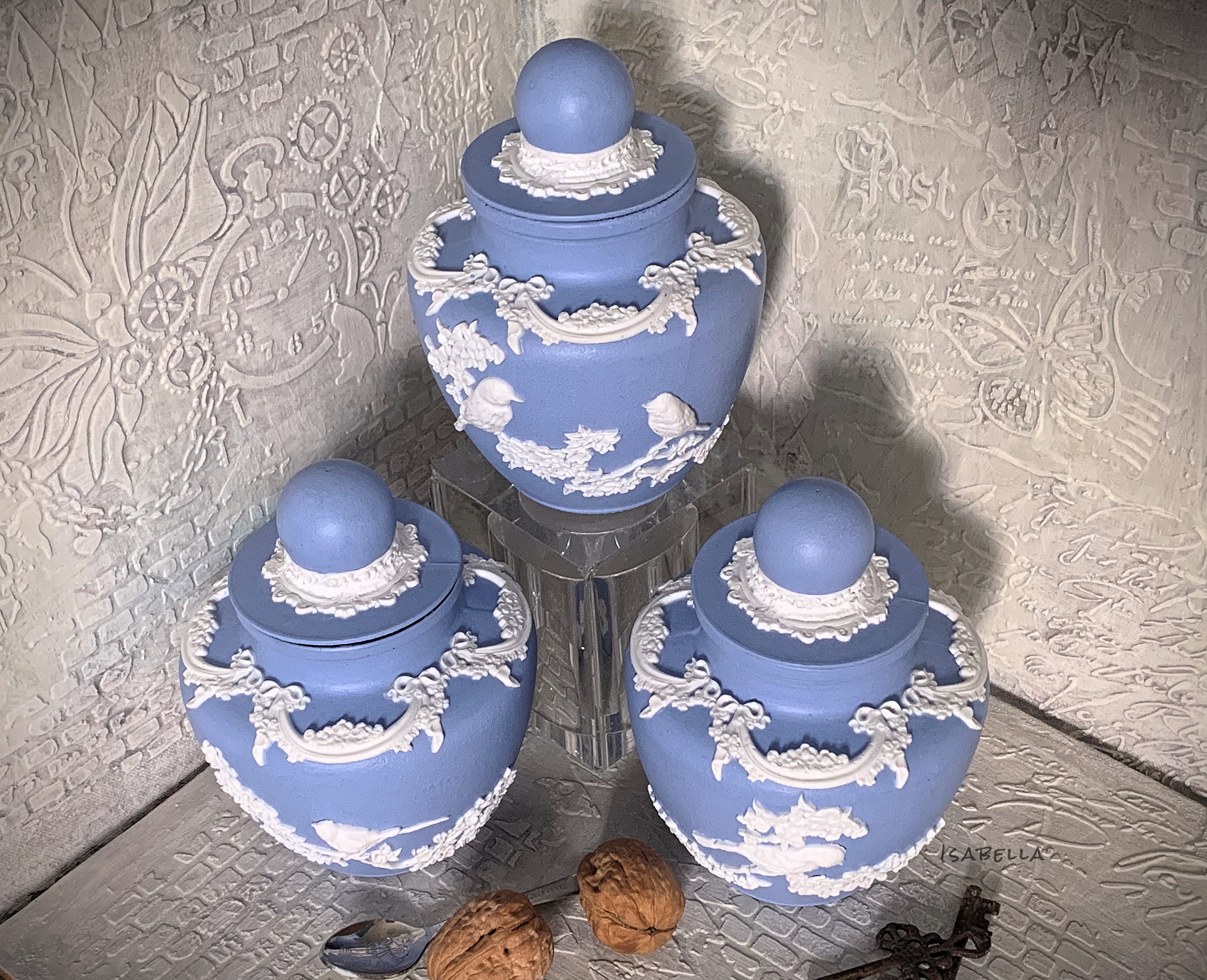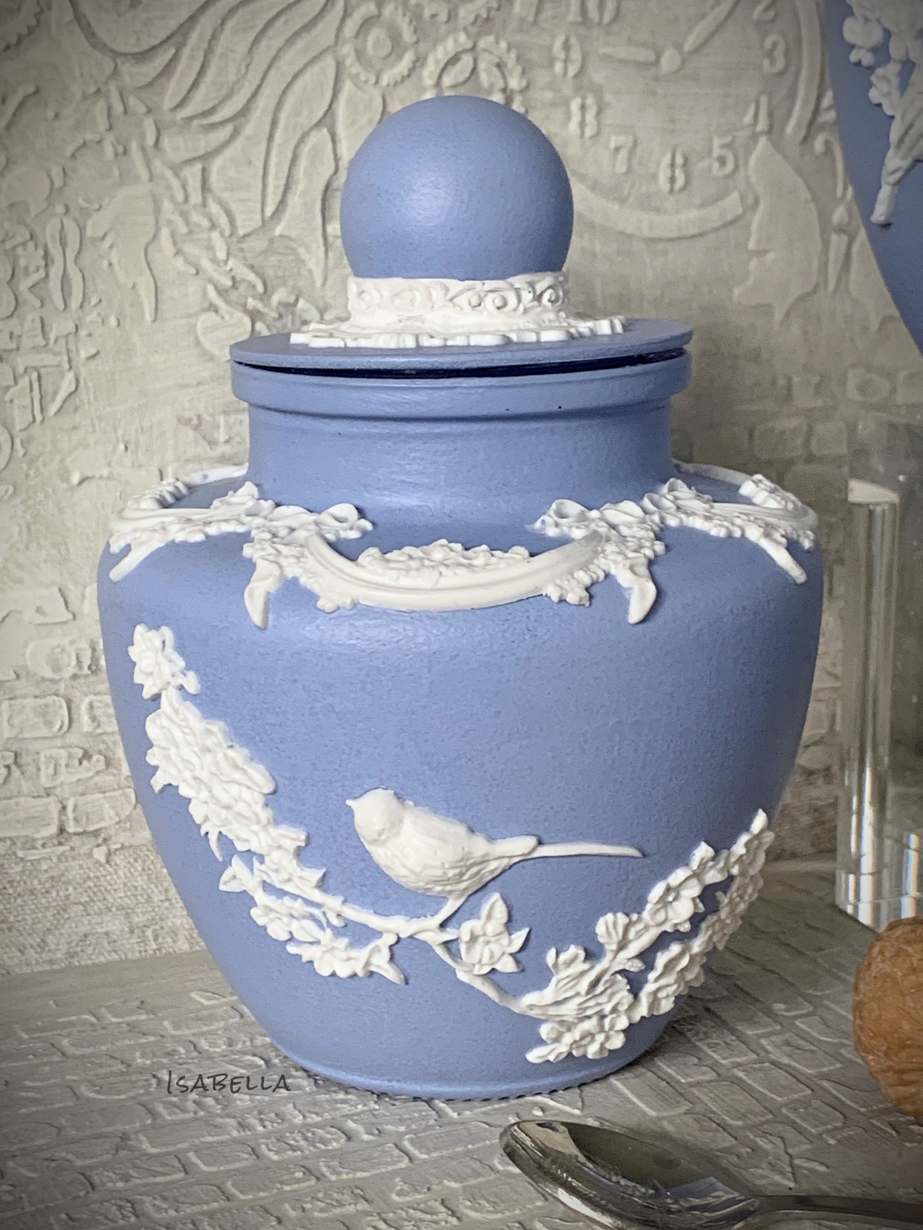 Показываю баночки с двух сторон, декор не одинаковый и не симметричный. Такое присутствует на изделиях Веджвуда.