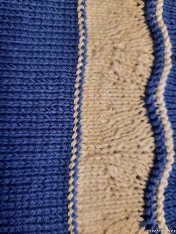 сочетание лицевой глади и узора павлиний хвост очень уместно