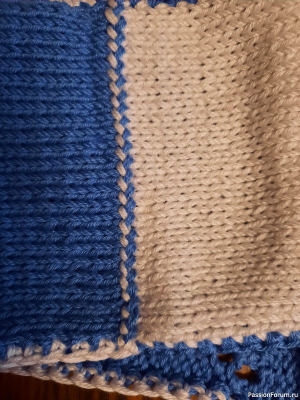 Отработала понравившийся в интернете прием-соединение деталей двух цветов крючком косичкой,очень красиво смотрится .Именно тот способ и лежал в основе комбинации верха из 2 цветов