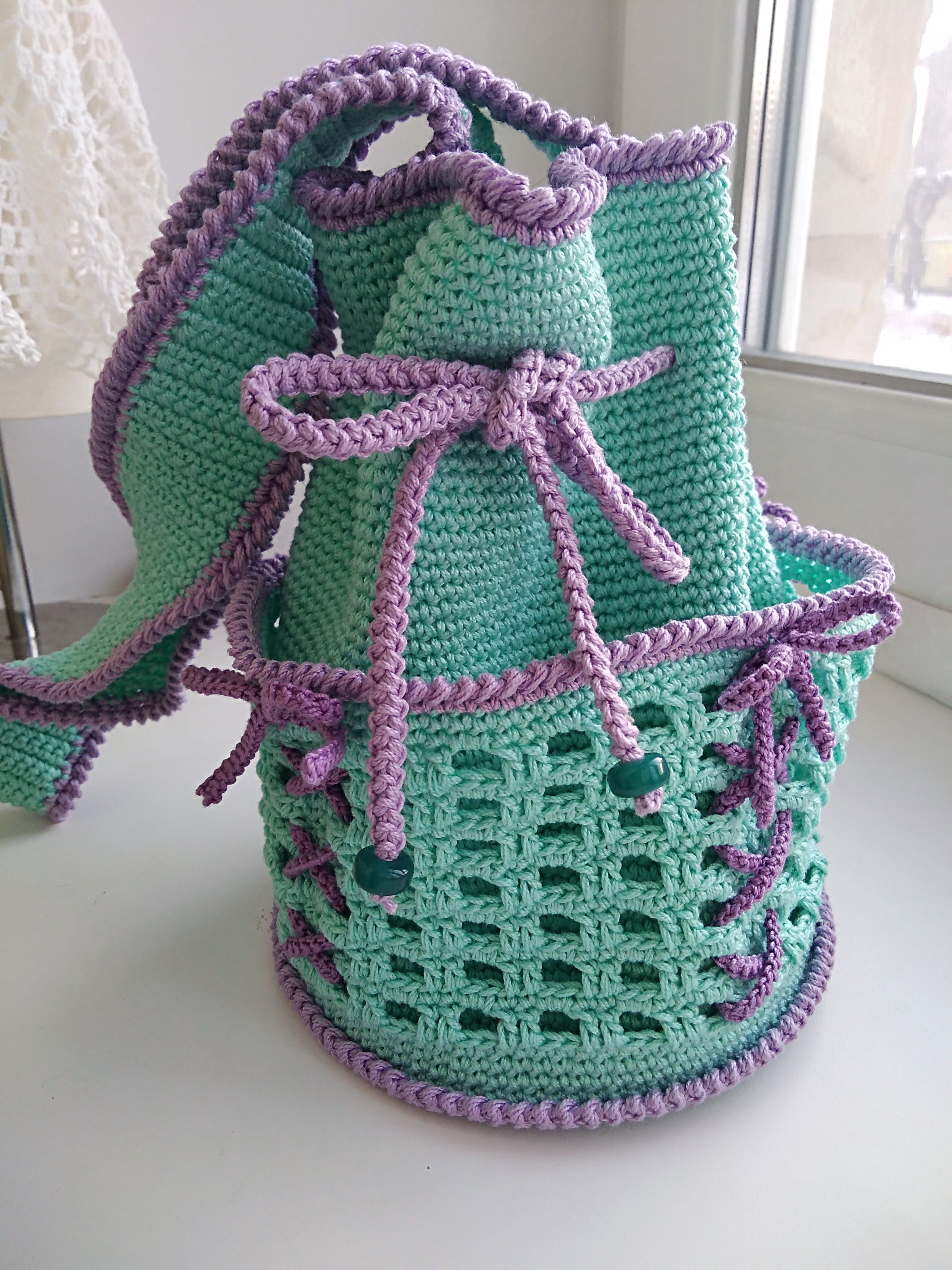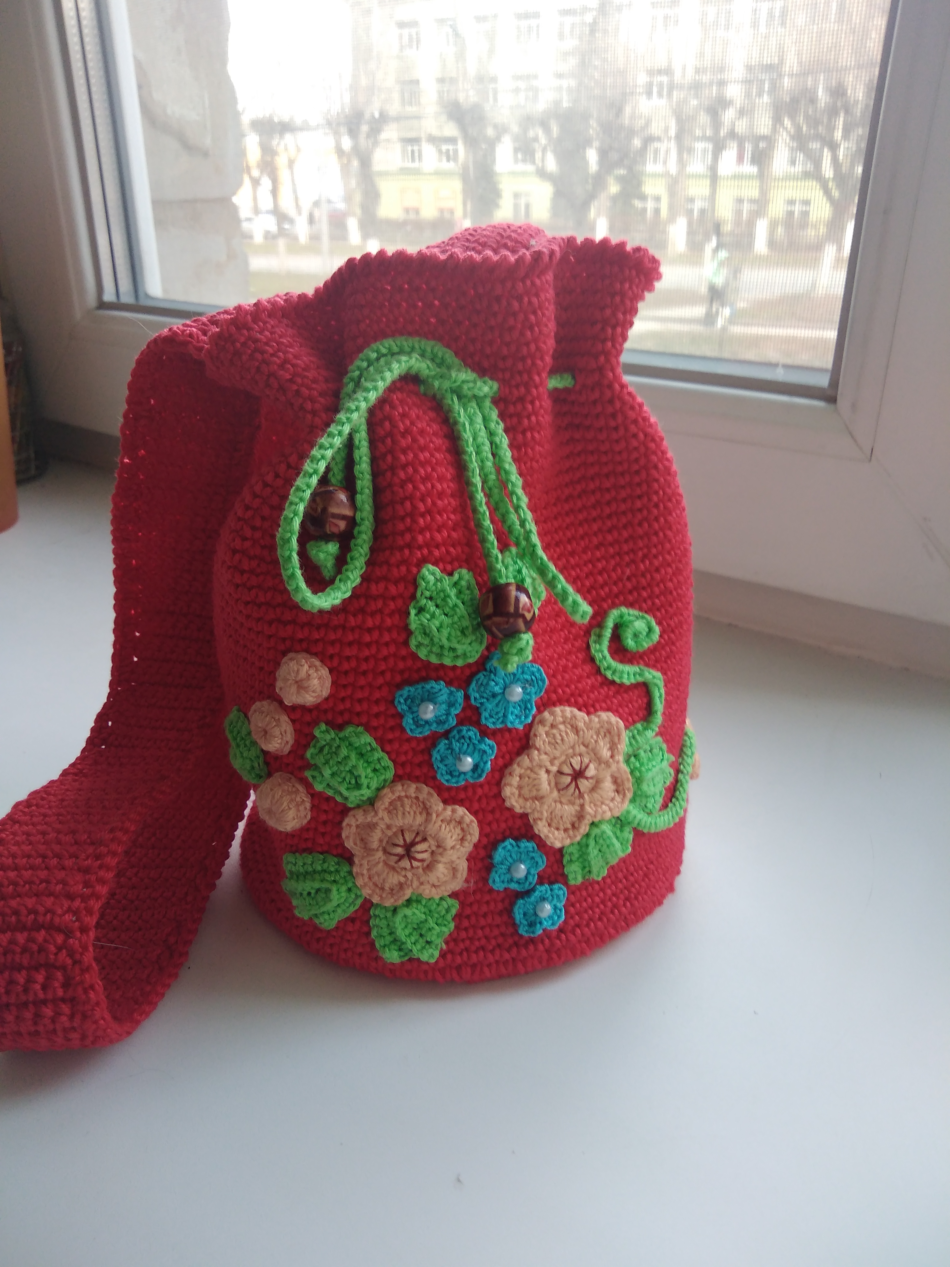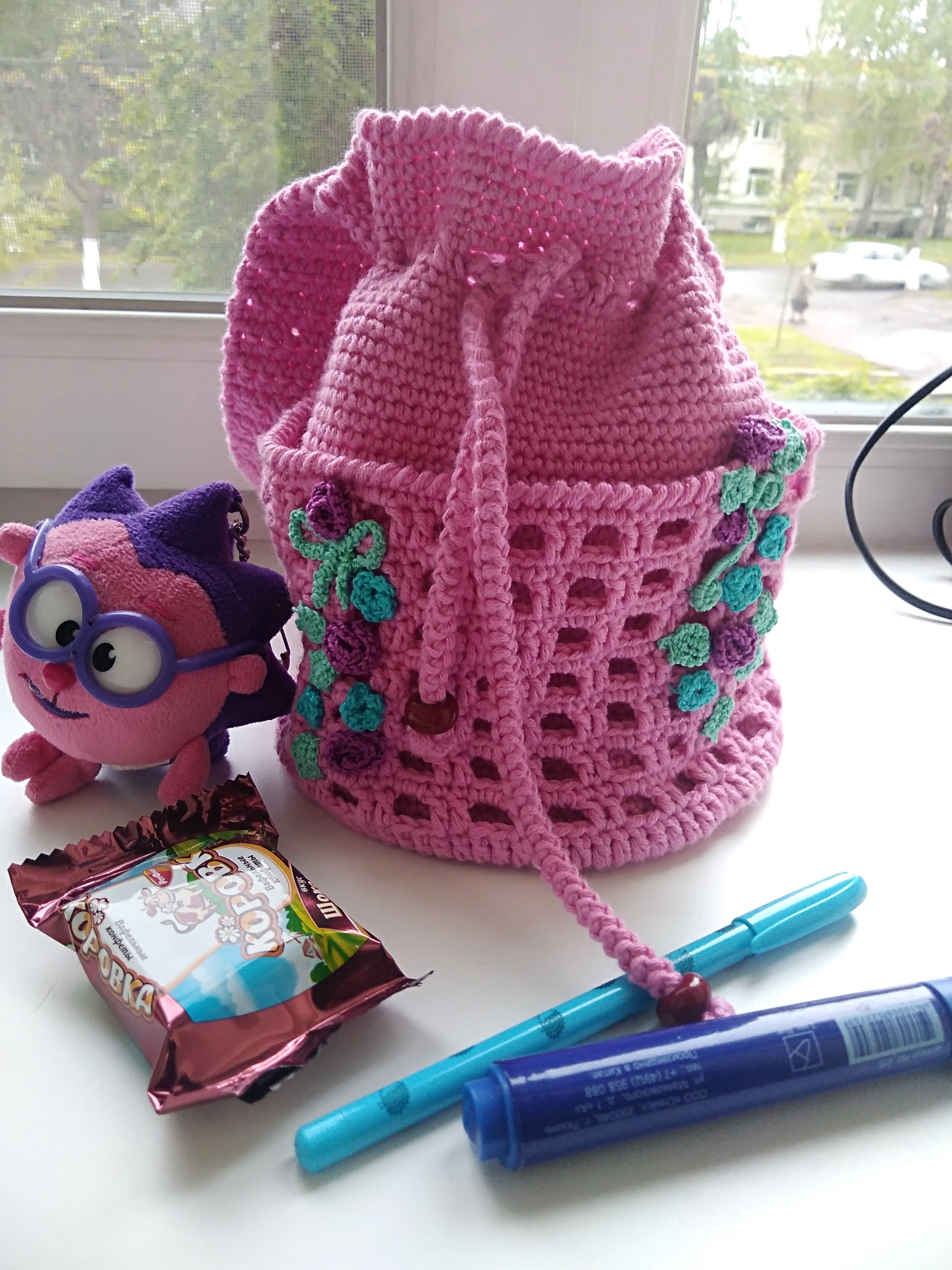 Доброе утро. Вот ещё одна моя любовь - сумочки торбы. Очень мне нравится эта форма. Круглая, удобная. Вяжу эти малышки для маленьких девочек. А разбирают их девочки большие. Говорят что они удобные косметички. Нуууу, наверно.