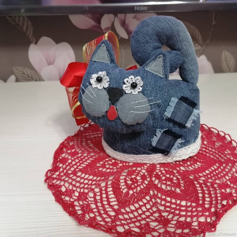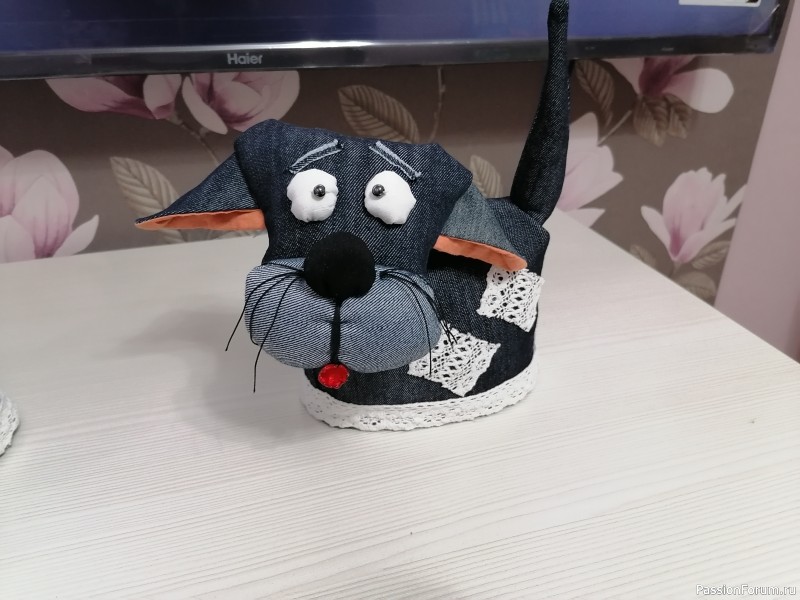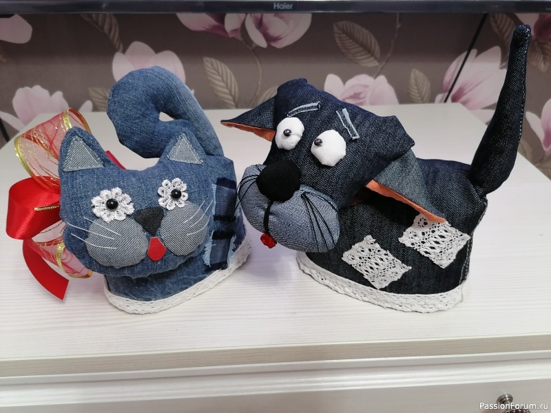 Всем привет. Недавно я шила из джинсы кота. И вот захотелось ему в пару друга пёселя сделать. Теперь у меня вот такая замечательная парочка! Кот Матроскин и пёс Барбоскин!