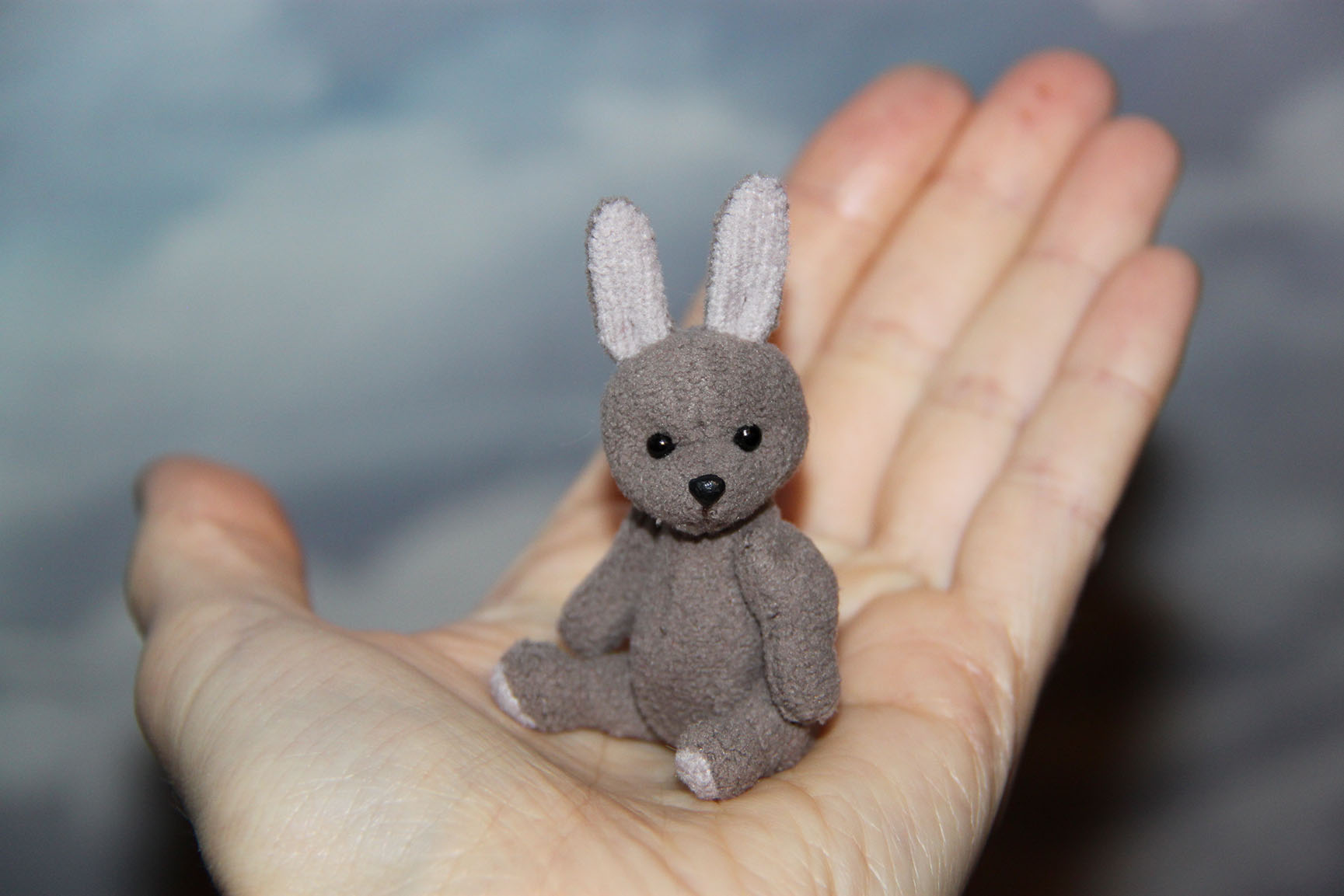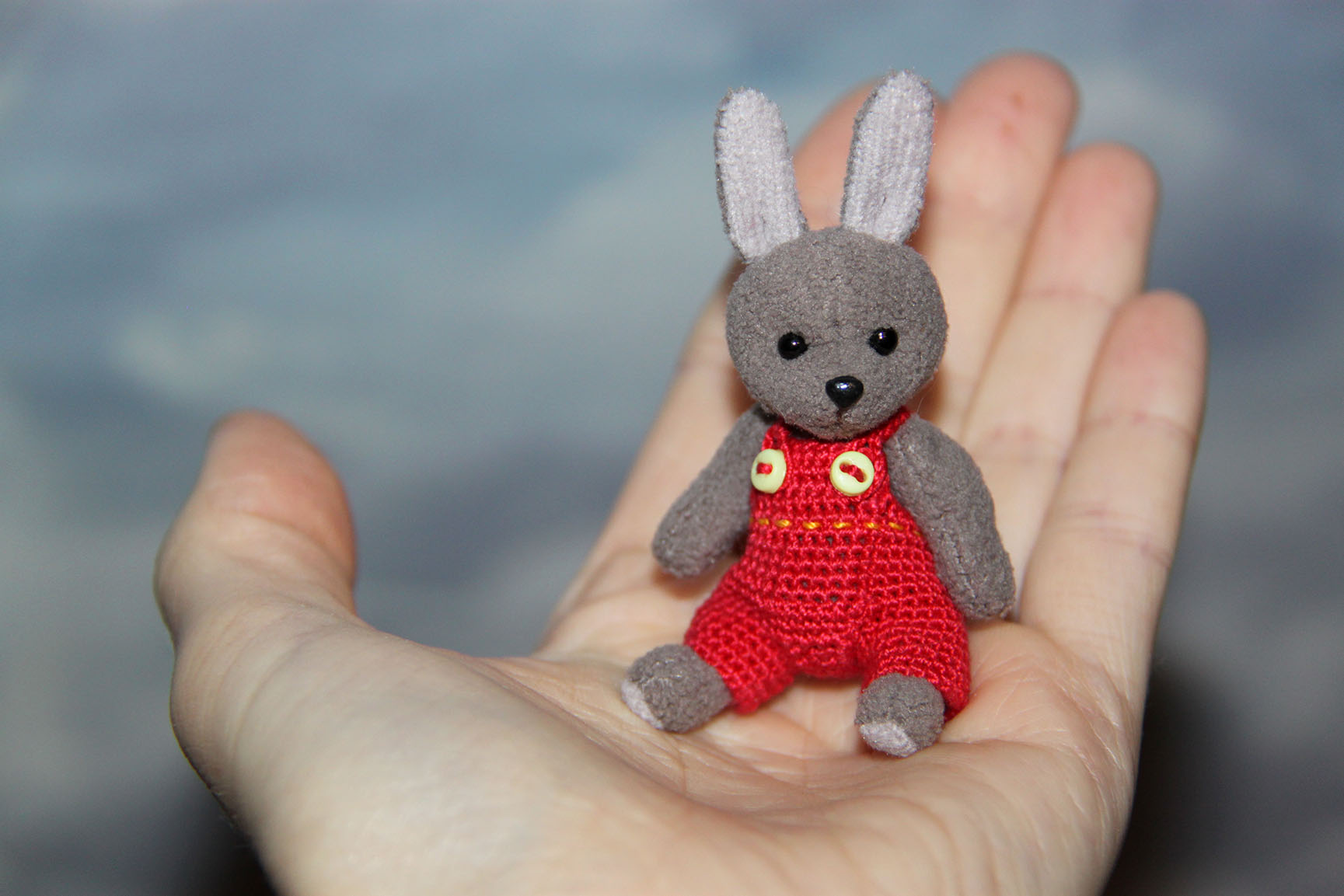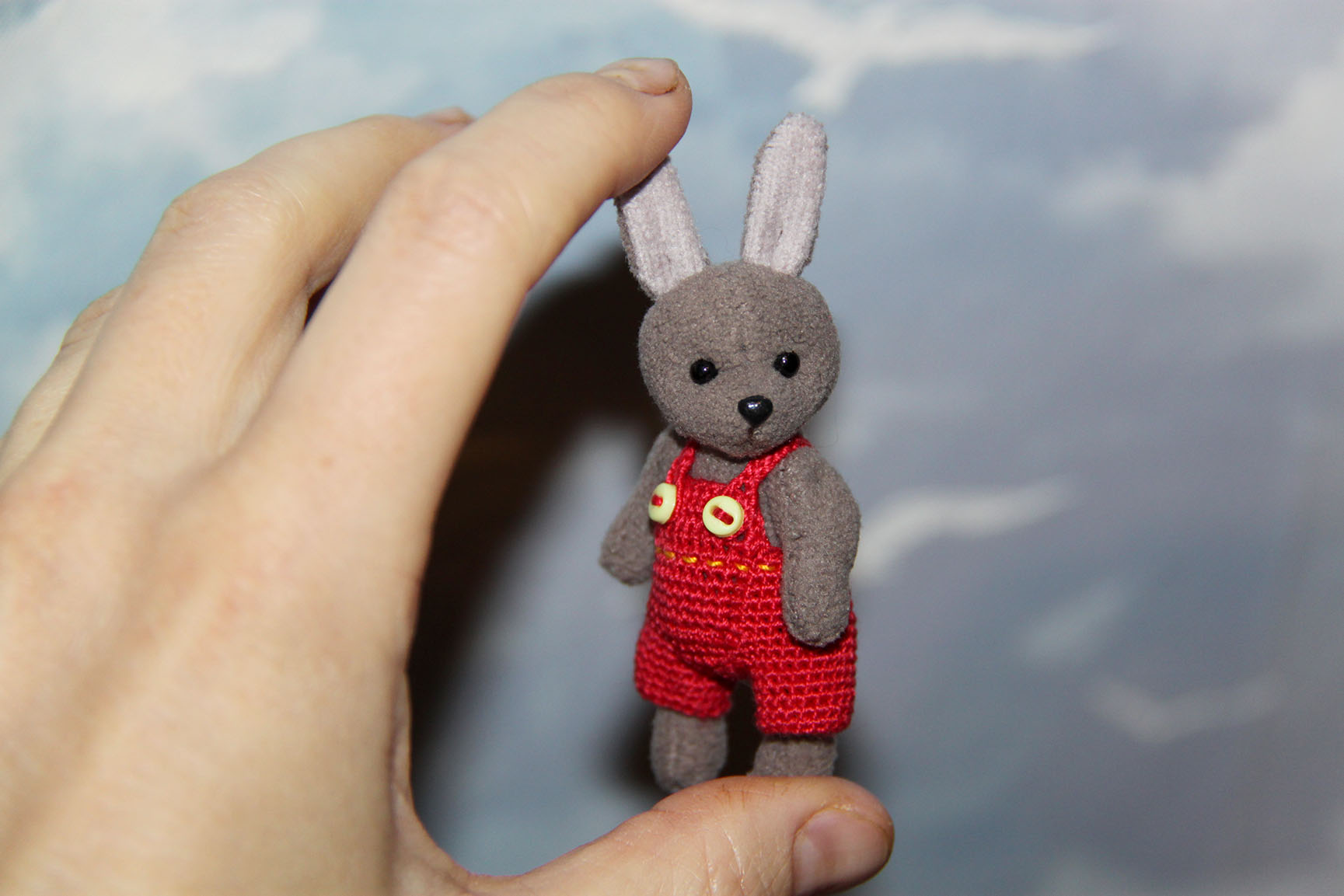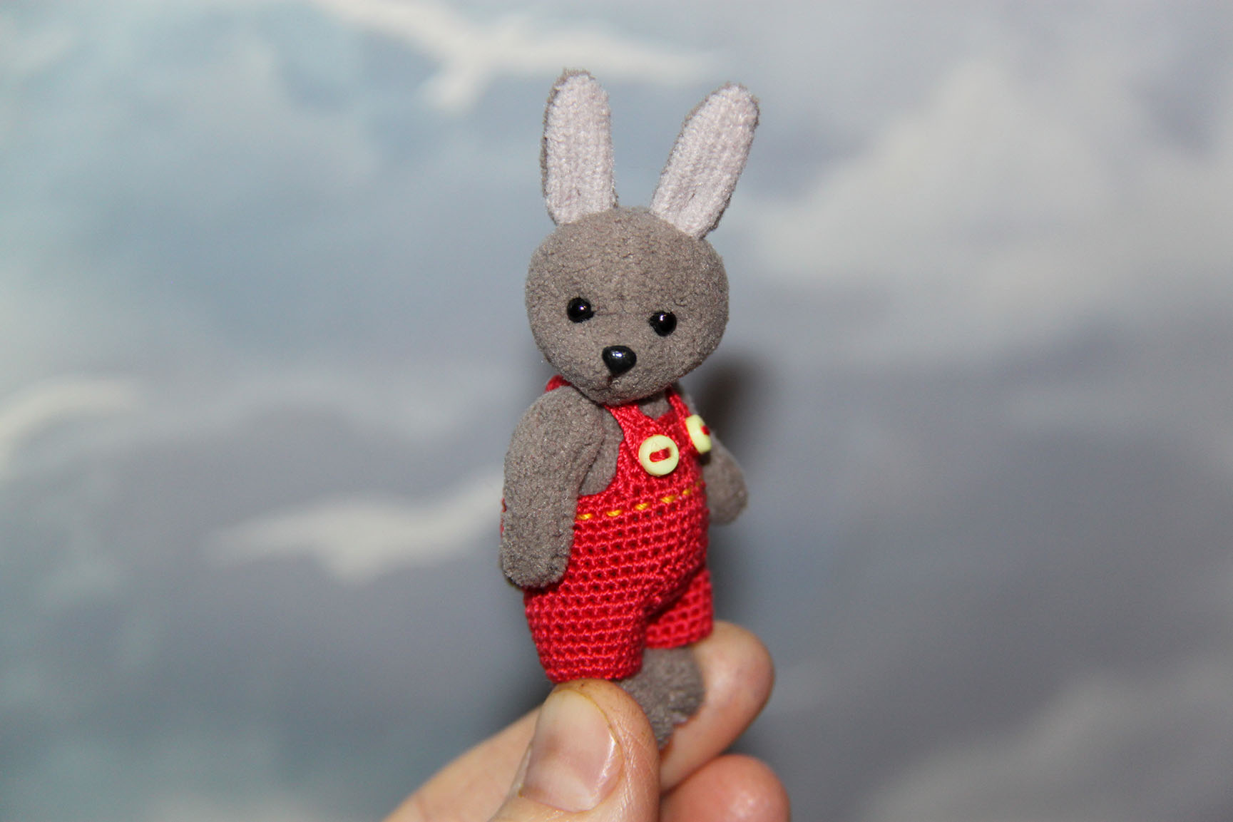 Малыш выполнен в технике тедди, голова и лапки подвижны. Рост 5 см. Самостоятельно сидит.