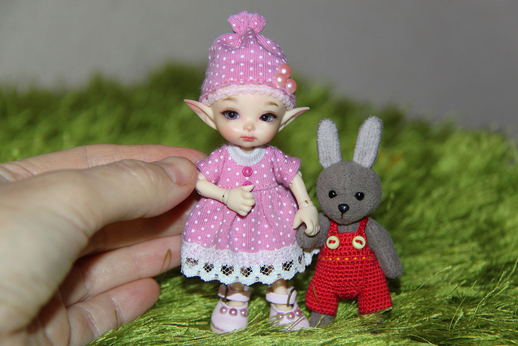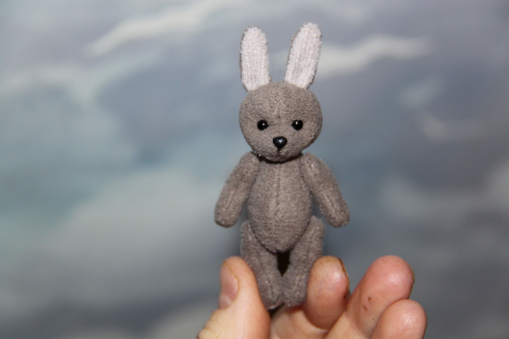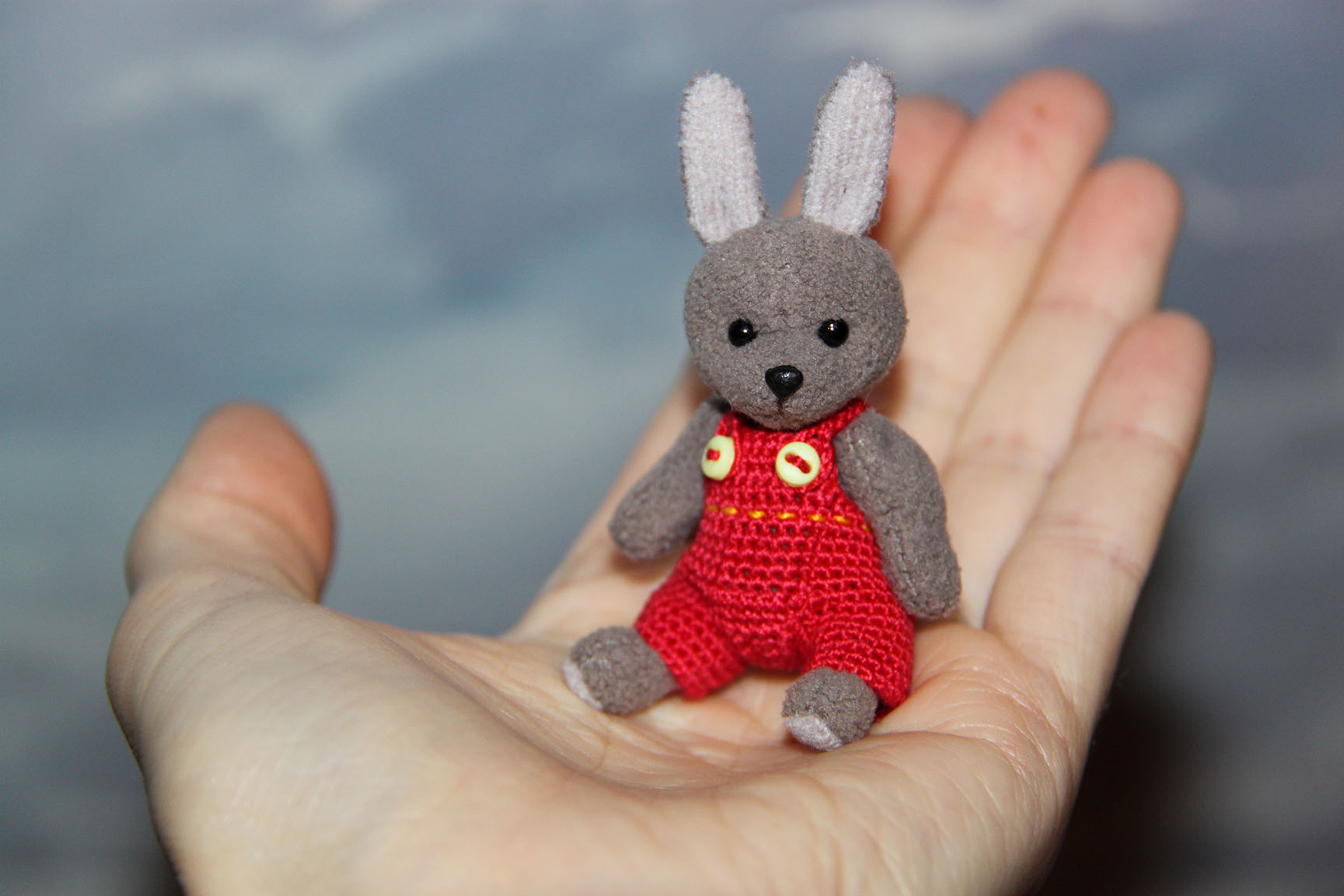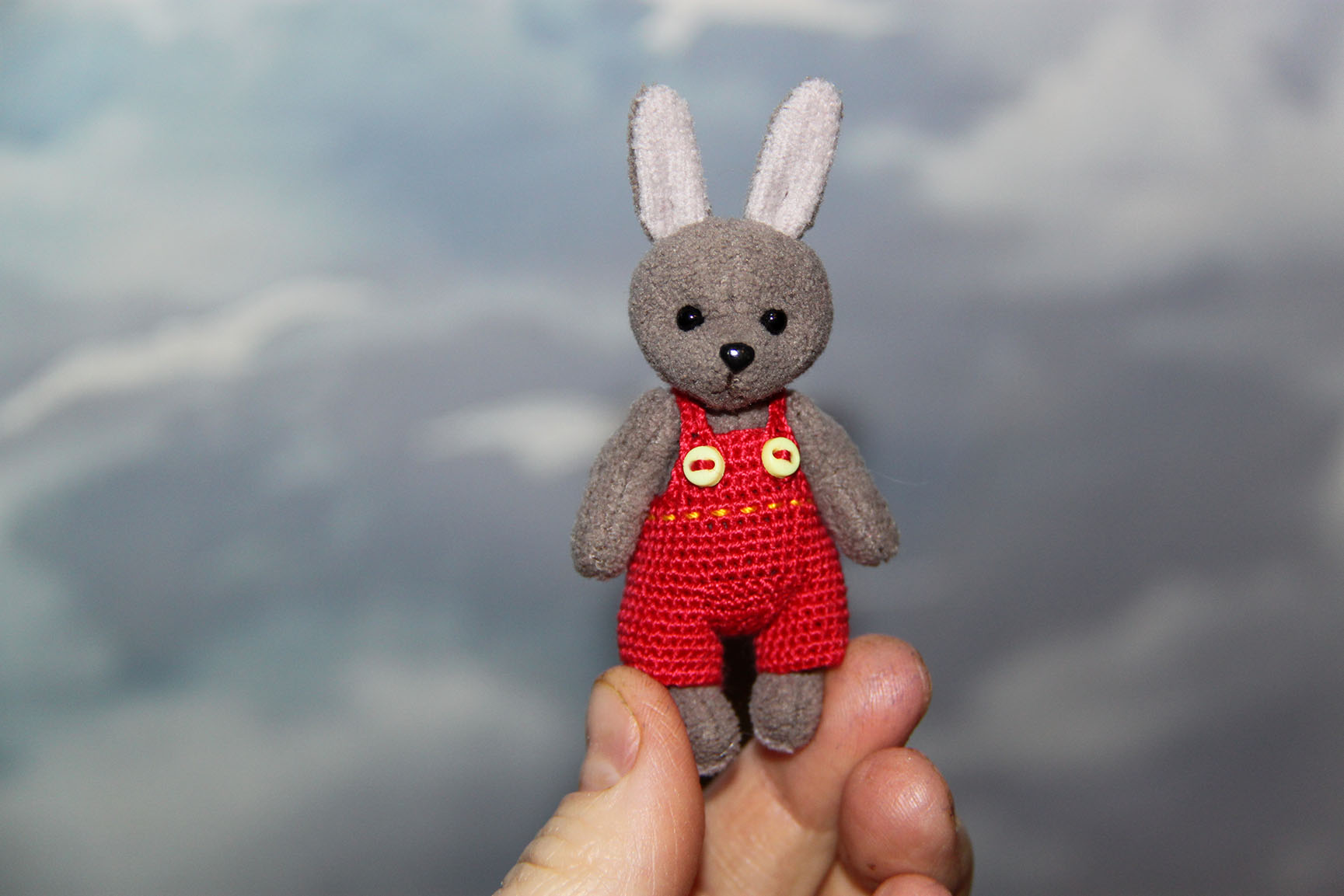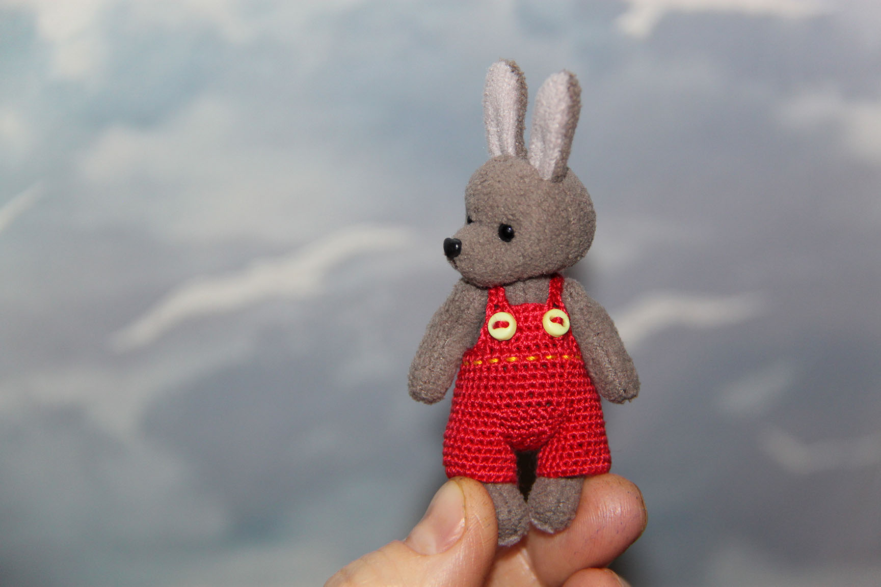 Малыш выполнен в технике тедди, голова и лапки подвижны. Рост 5 см. Самостоятельно сидит.