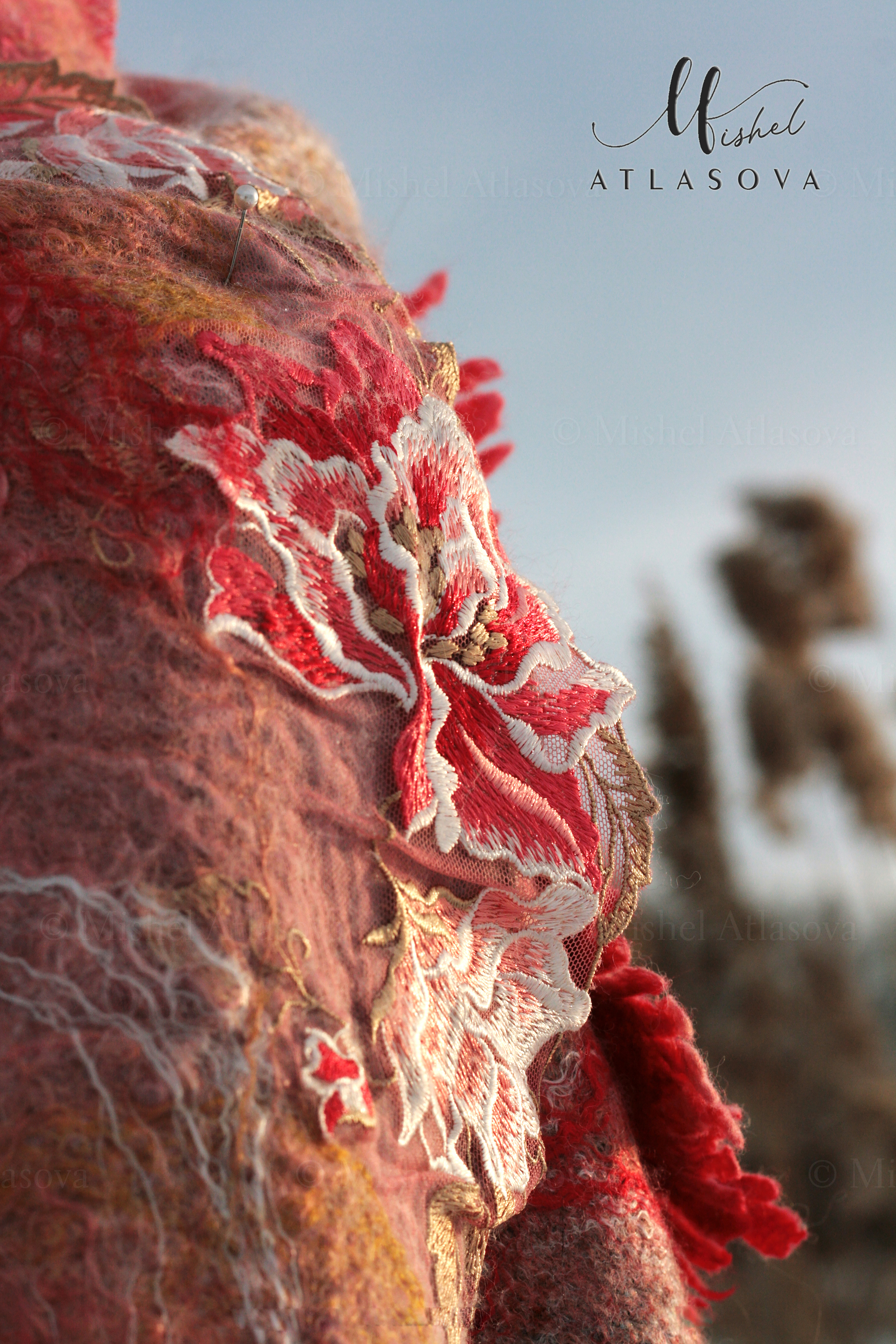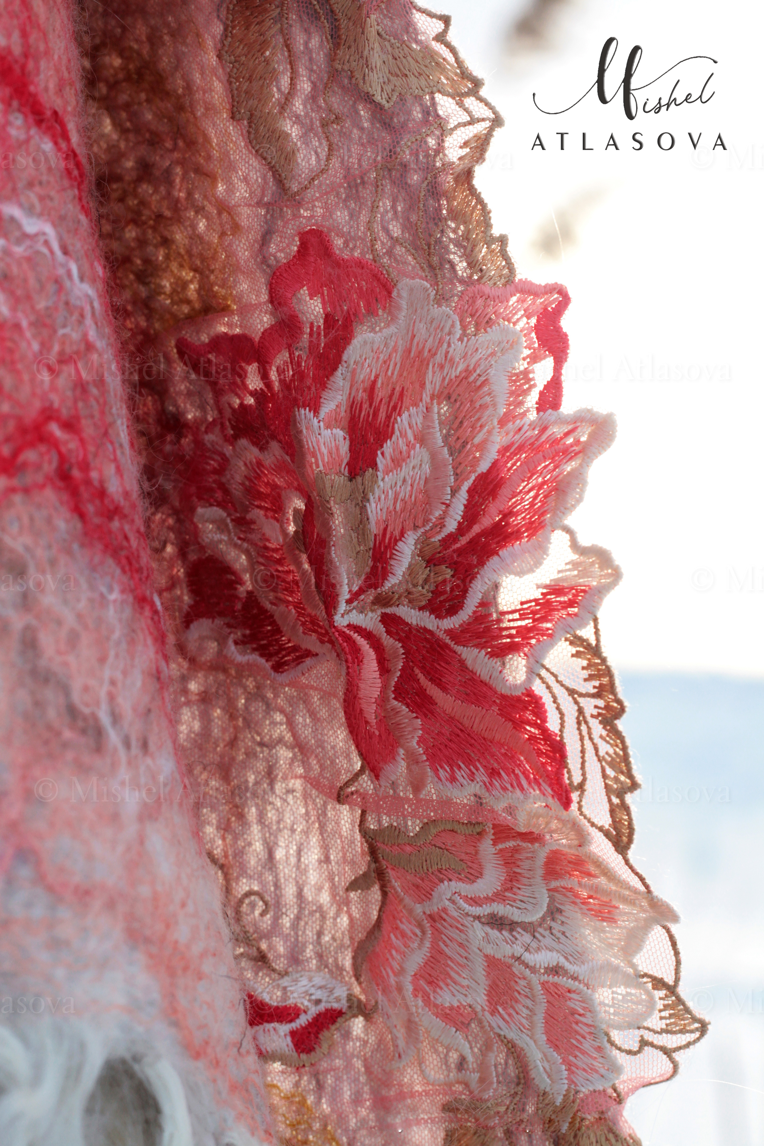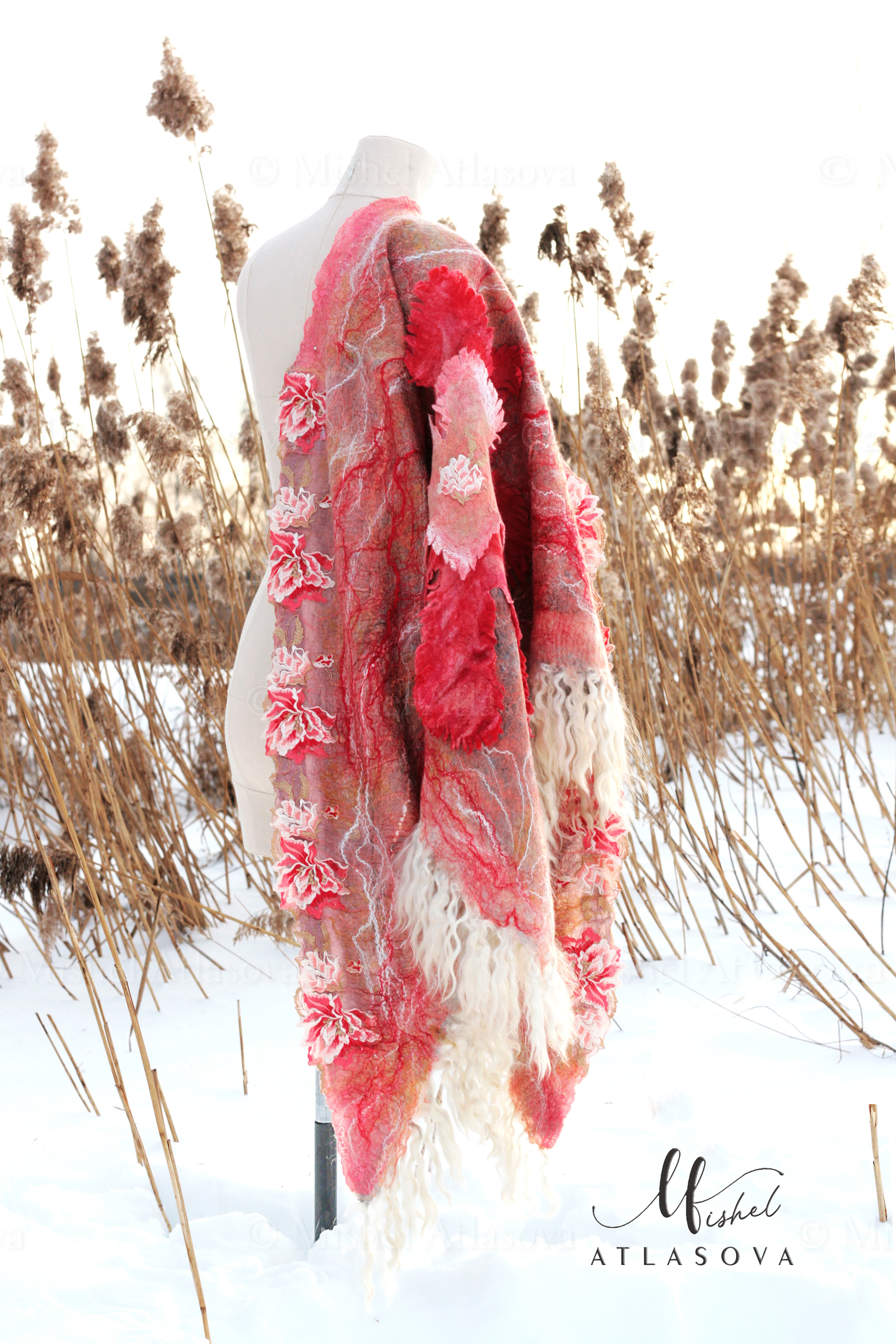 Новая работа Валяная шаль большая из шерсти Палантин шерстяной Боярыню согревать в тереме