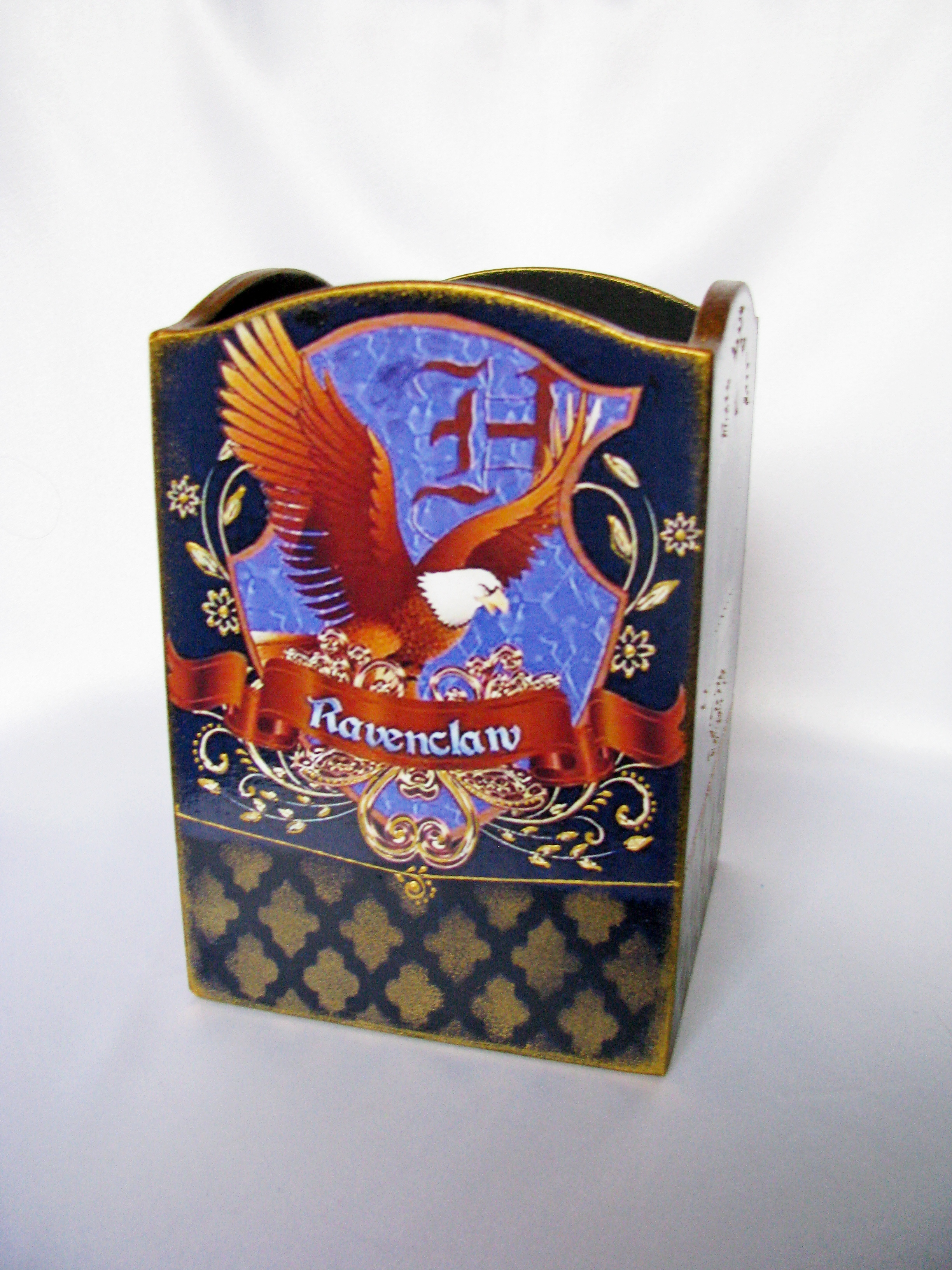 Добрый день! Люблю создавать наборы для интерьера. Данный подошел бы для комнаты мальчика. "Гарри Поттера" я не читала и не смотрела фильма. Пришлось познакомиться с деталями, узнала про факультеты, школу "Хогвартс", атрибуты самого Гарри и пр. Размещаю пост в разделе декупаж, хотя присутствует моя любимая вышивка крестом. Использовала распечатки М. Власовой, а также собственные.