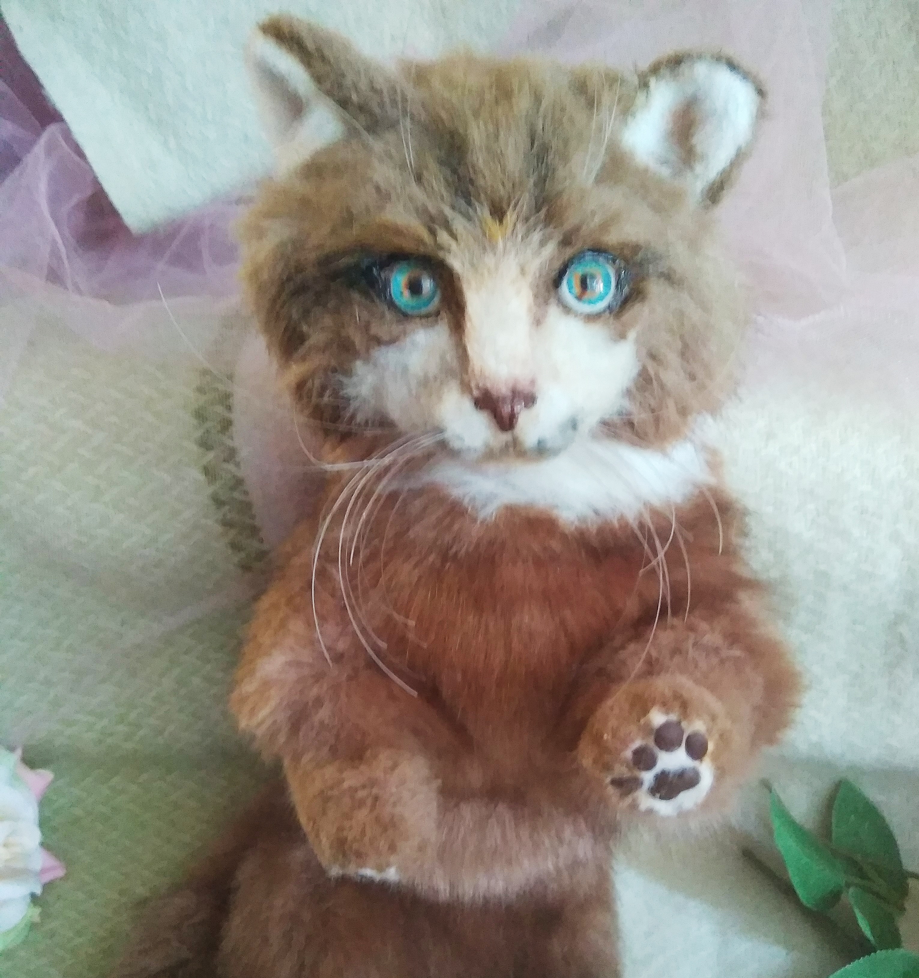 Добрый день, дорогие форумчанки, спешу поделиться с вами моей новой работой, даже в соцсетях ещё не не показала. Сшита полностью вручную из искусственного меха с беленькими вставками из начинки. На подвижном каркасе, выкройке делала сама. Самая трудная мордочка, оказывается, у кошки, долго я с ней возилась. Итак ,встречайте Марусю.