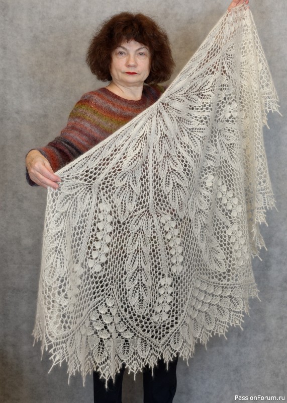 Вы — молодец, что не спасовали. Сама по себе шаль очень красивая, может это я люблю растительные мотивы, но из них тоже не все смотрятся так гармонично, как эта. Замечательно!