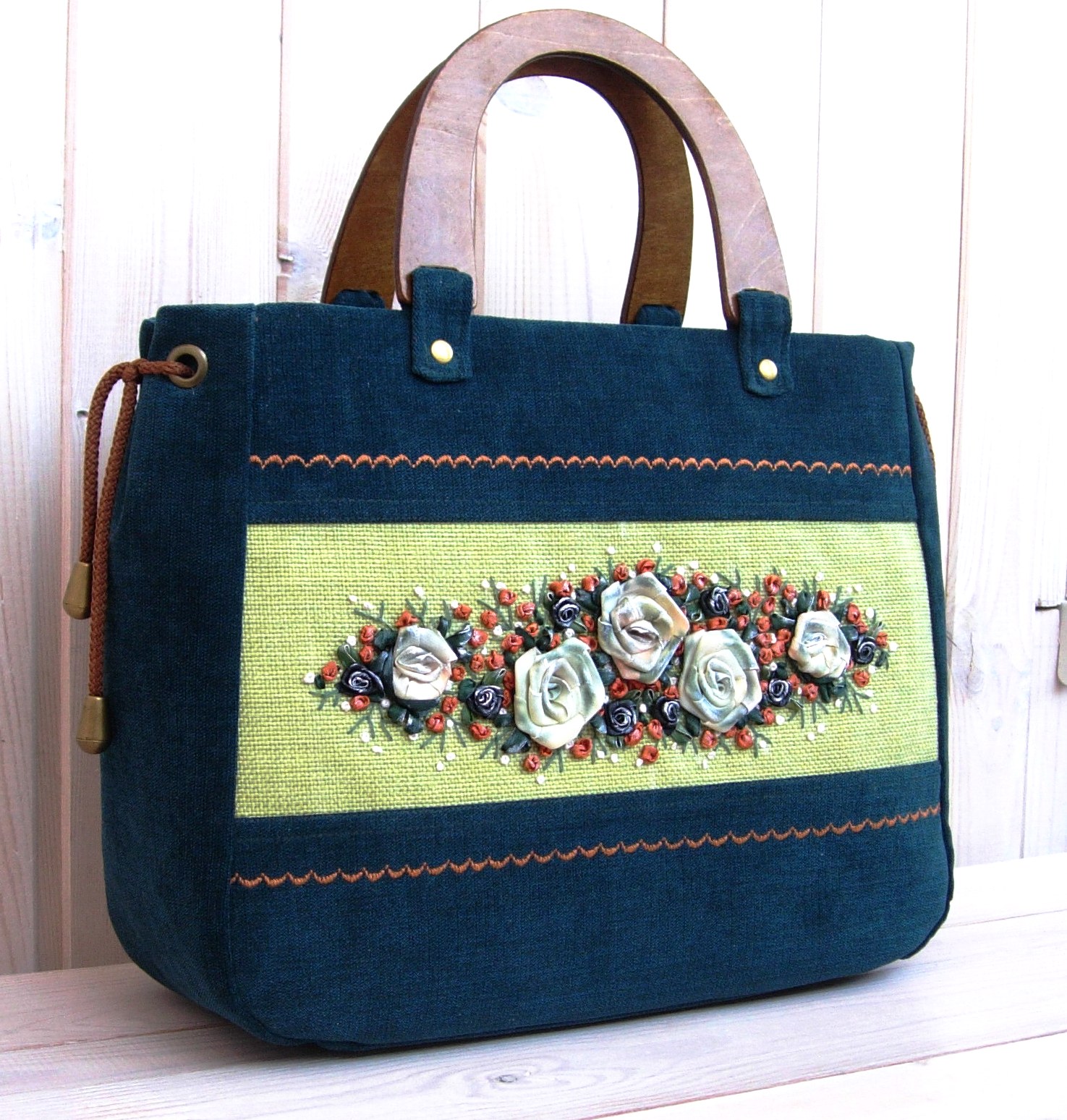 Спасибо за красоту, очень стильные, качественно выполненные работы! Тронула больше всего синяя из вельвета и рогожки сумочка, правда я не романтичная натура, для себя убрала бы вышивку из роз, предпочла бы что то геометричное, но это лично мое субъективное мнение. Восхищена вашим вкусом, восторг!