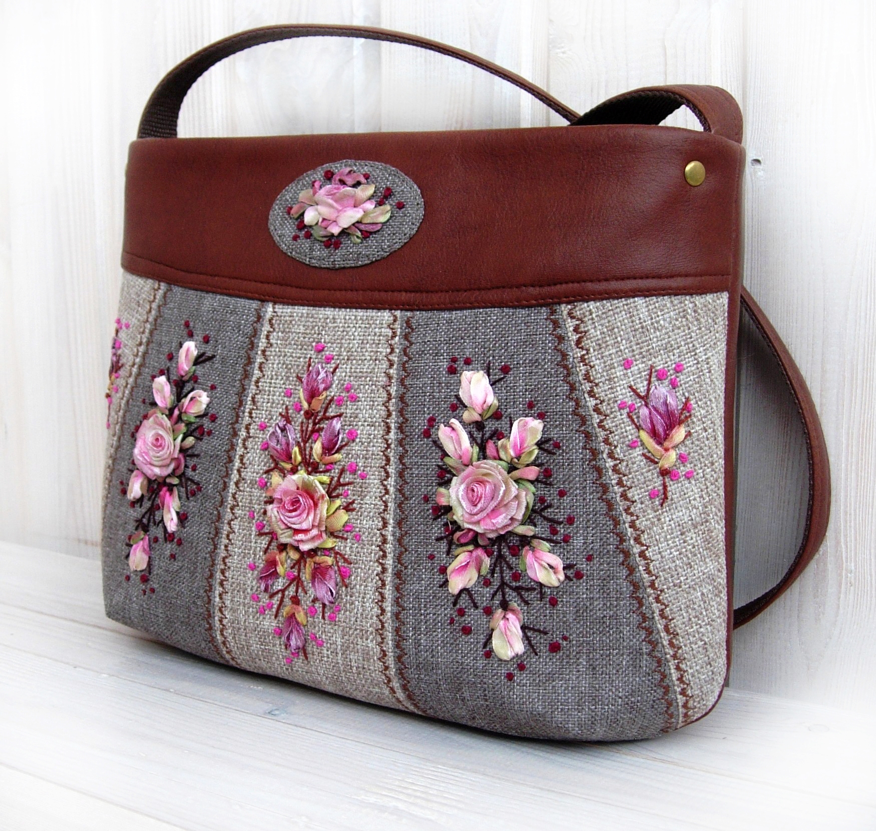Замечательно, неповторимо! Но когда я вижу сумки, вышитые лентами, сразу представляю себе наш «благословенный» транспорт. Долго ли такая вышивка проживёт? Хорошо, если транспорт — авто.