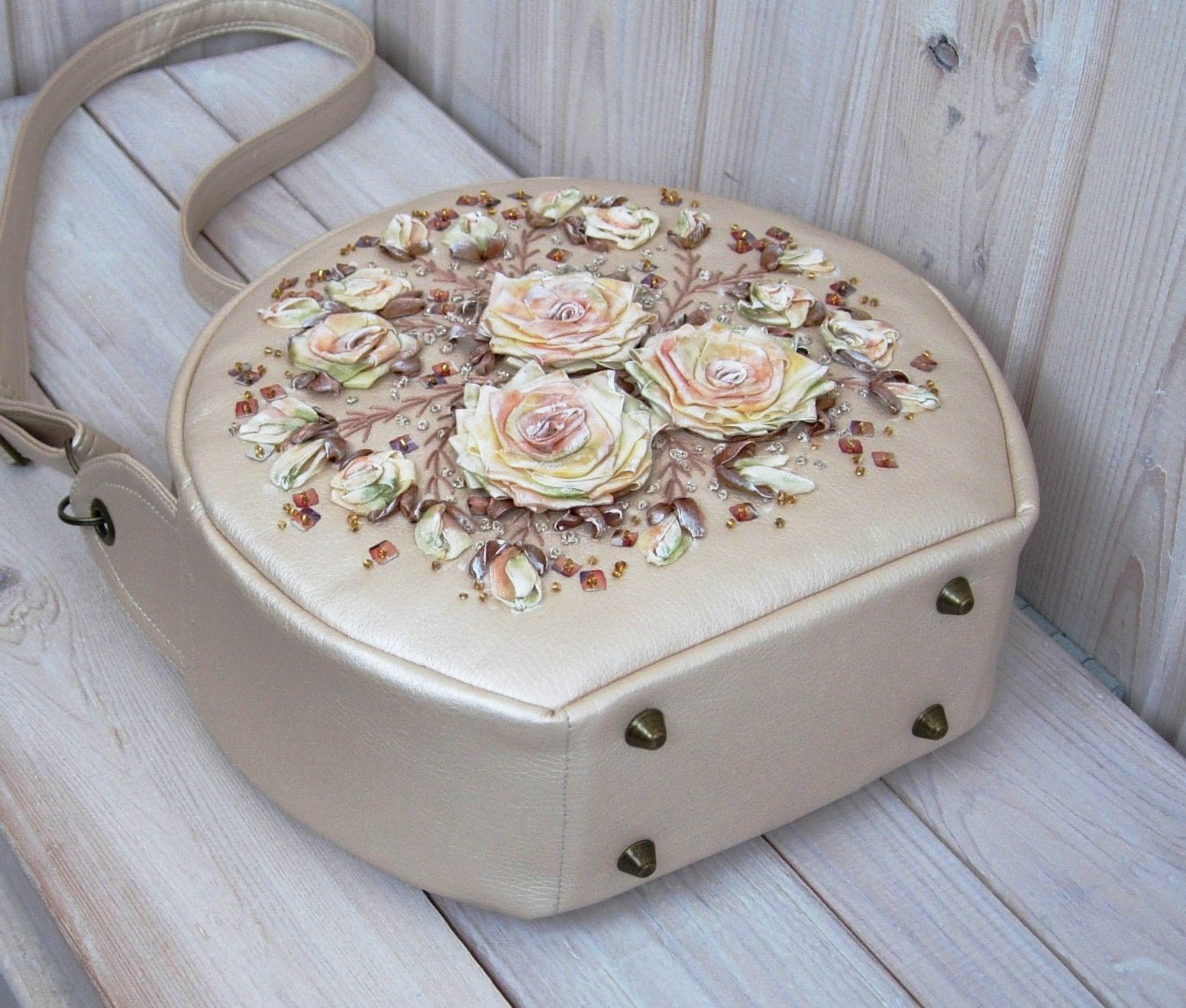 - Сумка "Чайная роза" - Долго ее делала, но результат стоит того,сделана на заказ. Вышивка лентами, бисером, пайетками,нитью с люрексом. Зефирка сливочная)))))Внутри два кармана, на тыльной стороне карман на молнии,сама сумка на молнии с двумя бегунками, ручка регулируется)