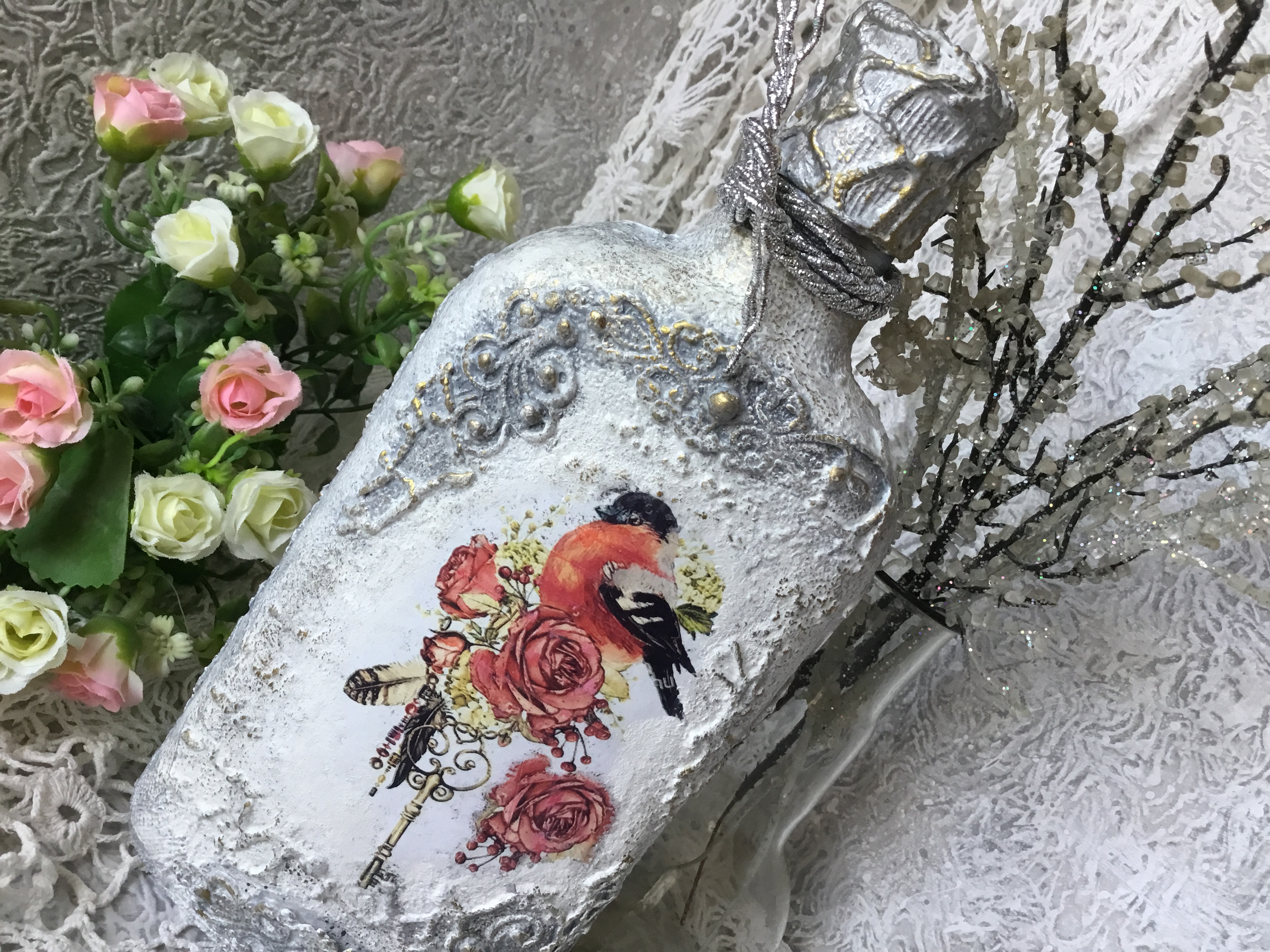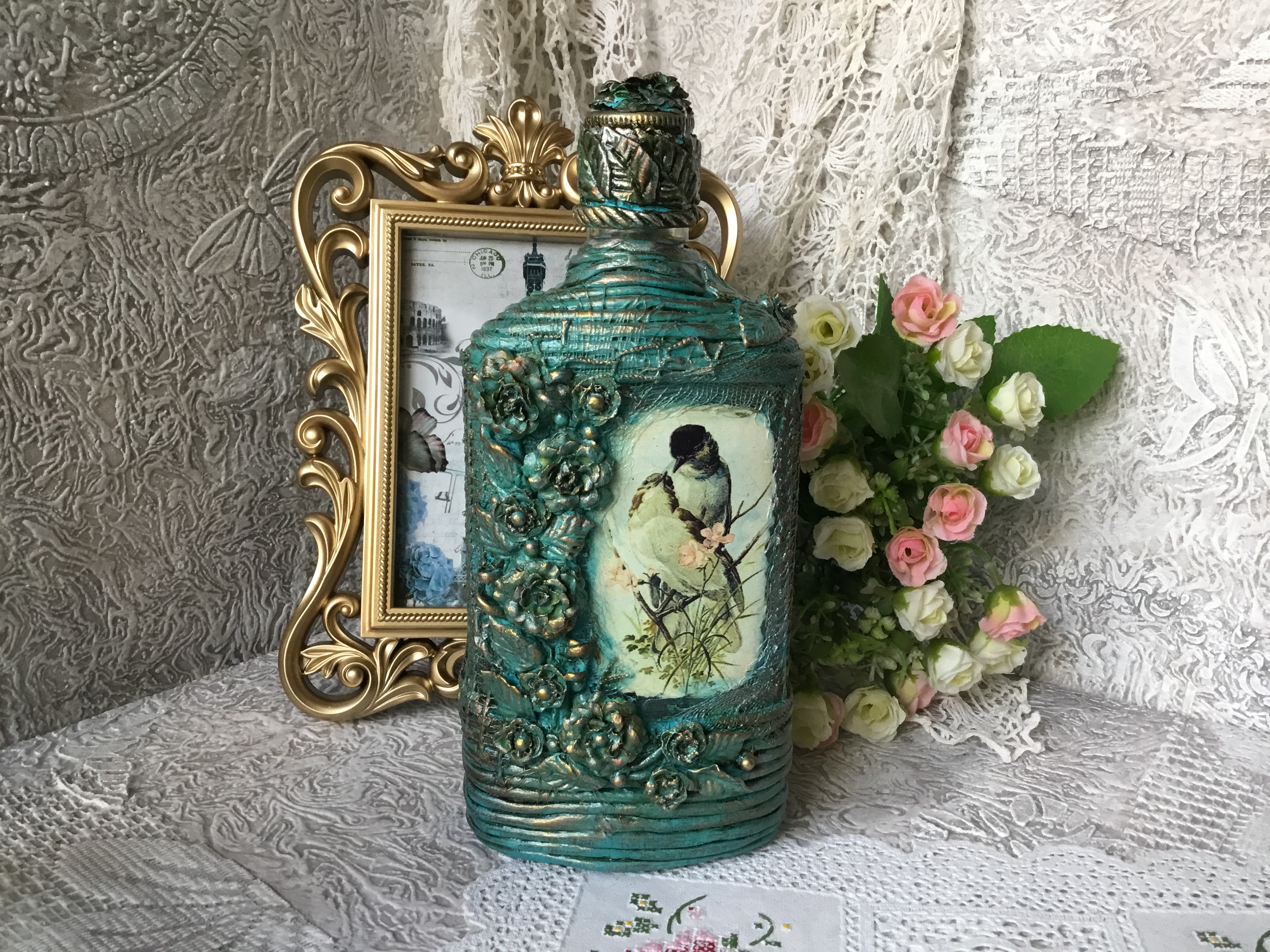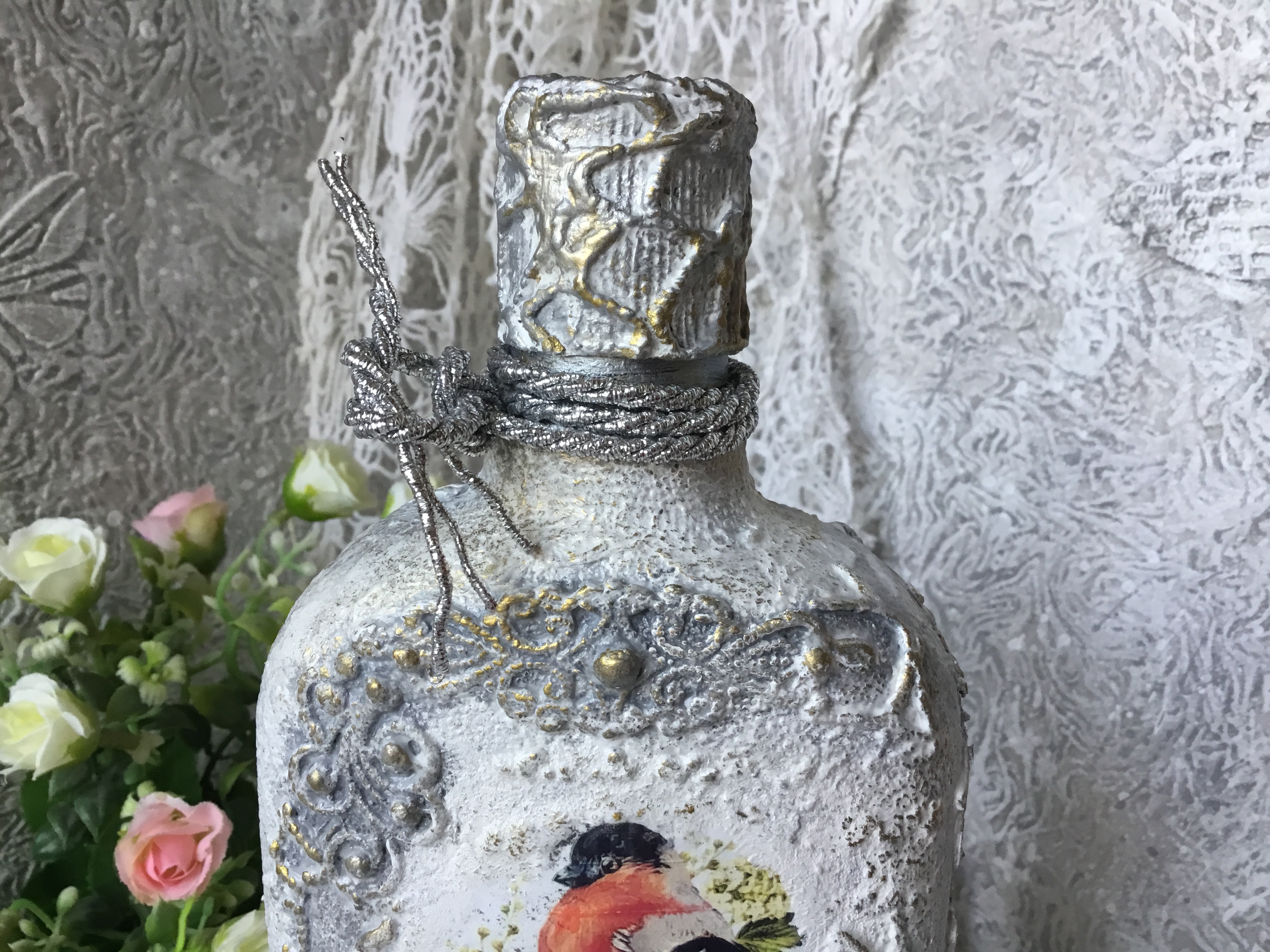 С большим вкусом и мастерством сделаны все бутылочки, но самые шикарные- это две последние работы- очень красивые и нежные!