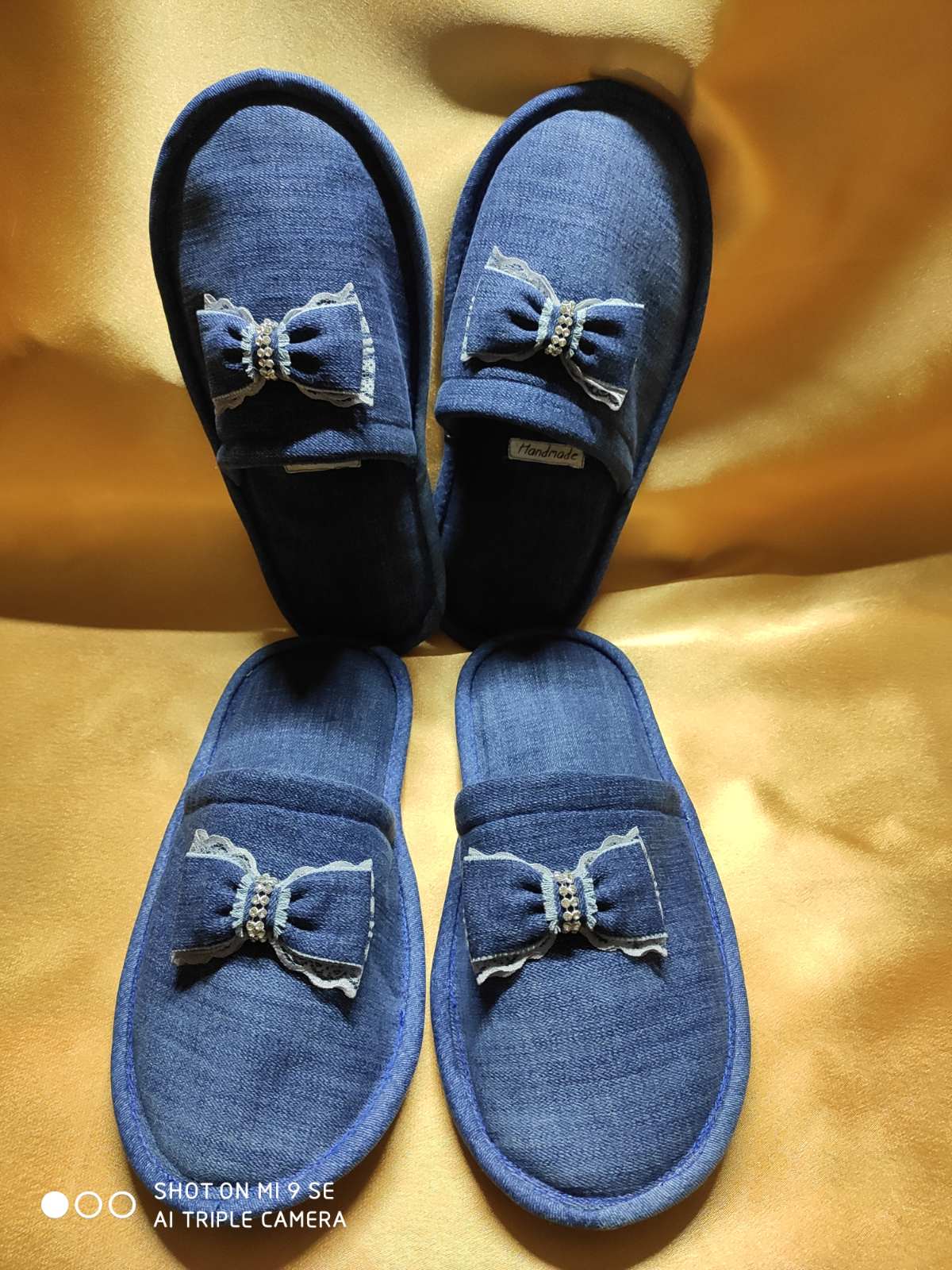 На подошву наклеена антискользящая салфетка, они в хоз магазинах продаются (клей обувной, влагостойкий), под салфеткой джинс (была юбка ещё со времён СССР прямо как фанера несгибаемая(шутка) вот она у меня на подошву и пригодилась)