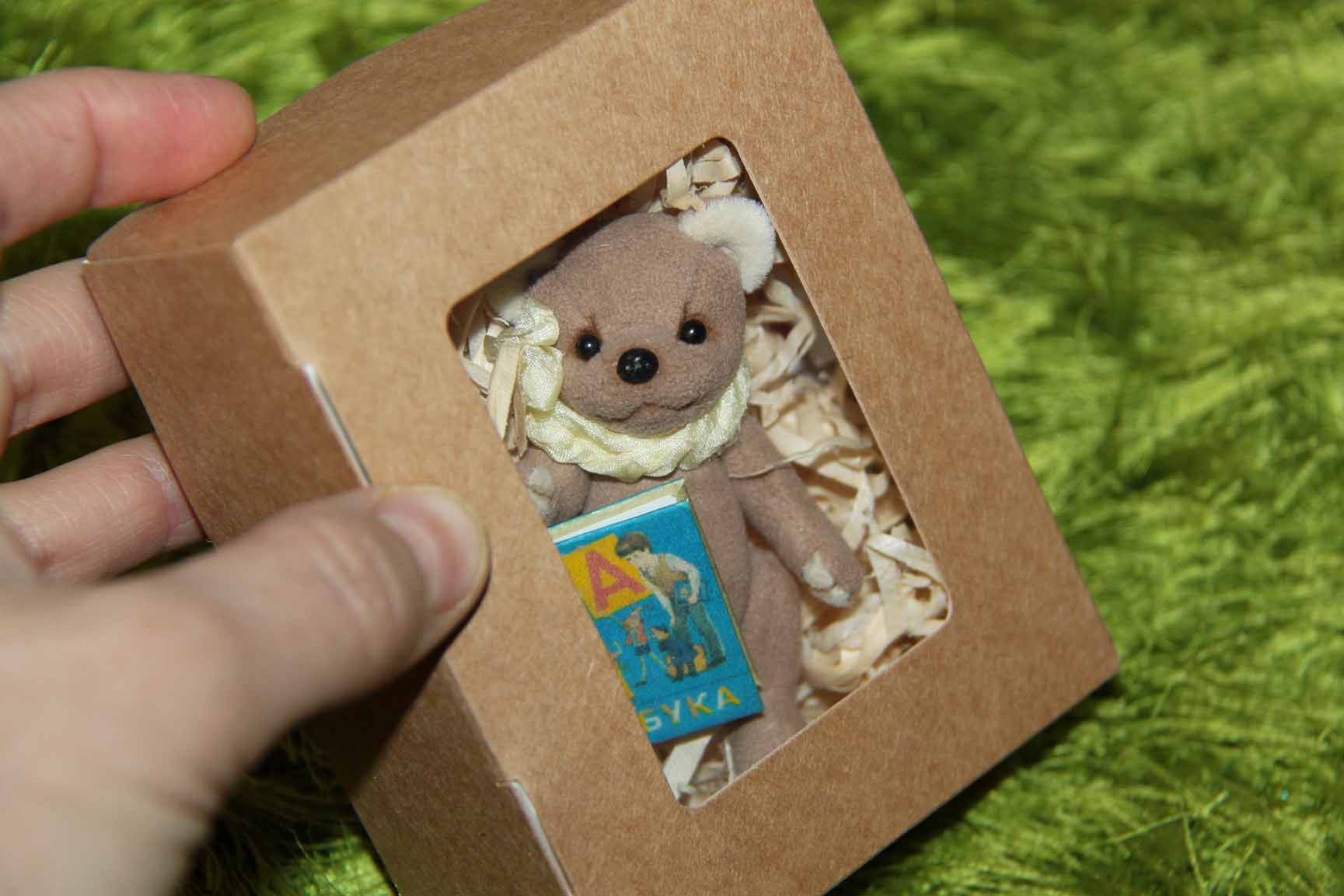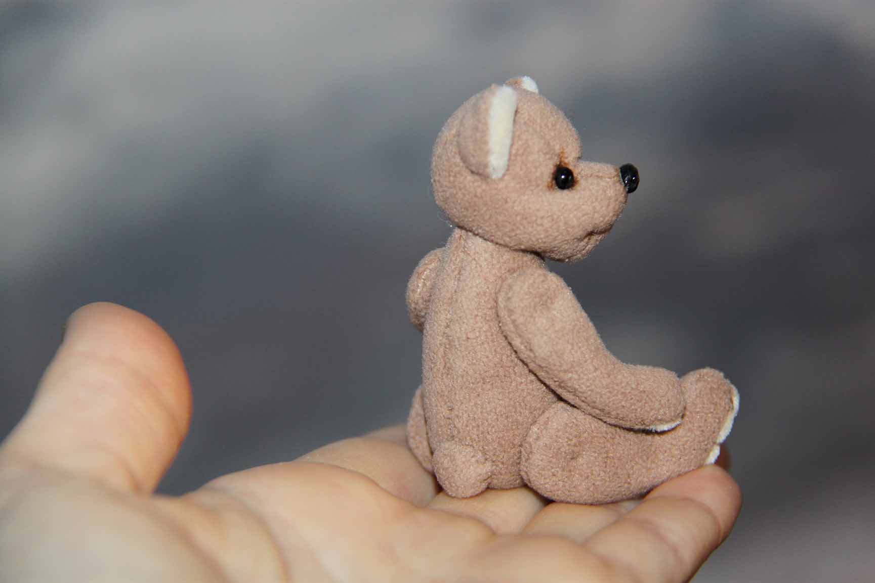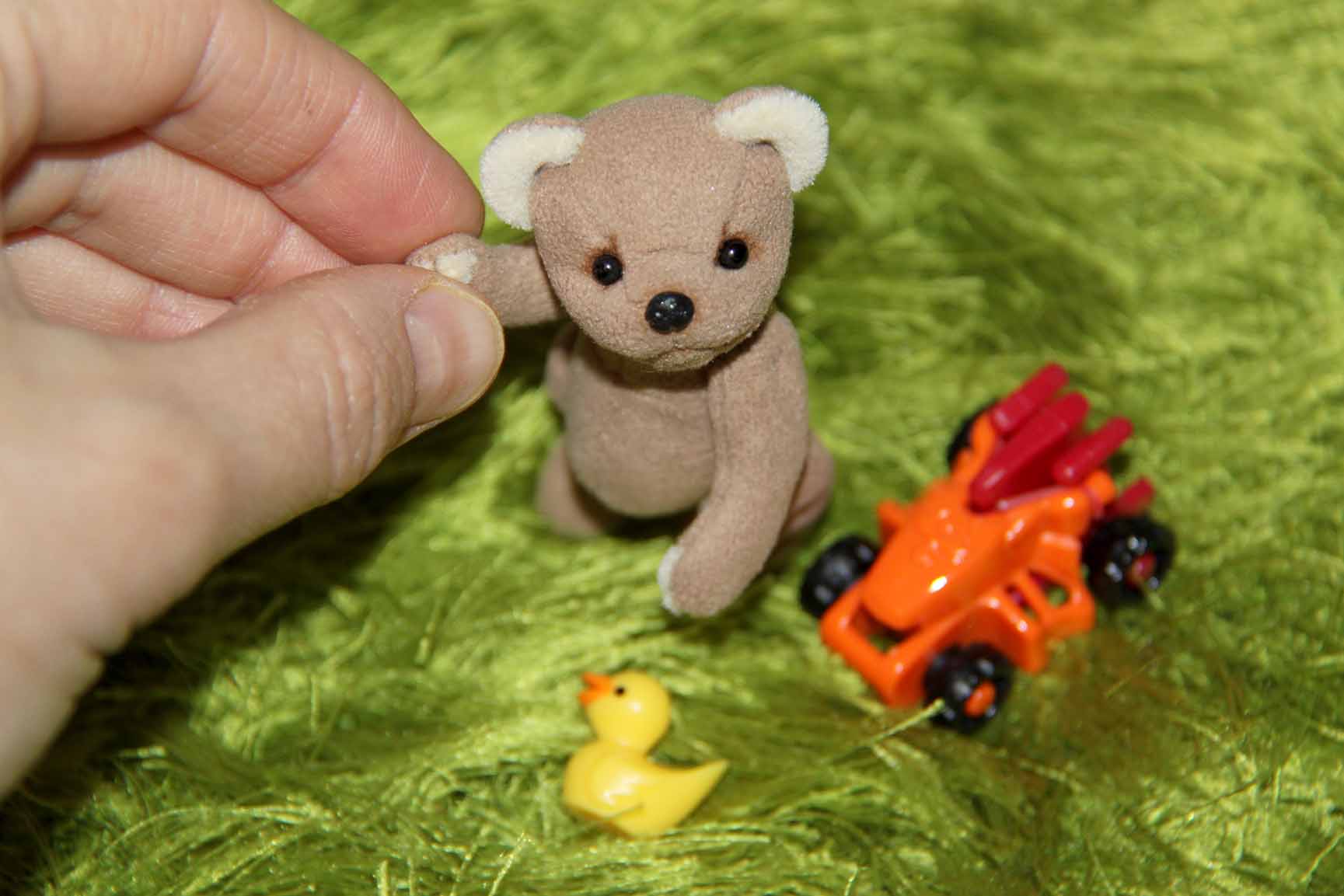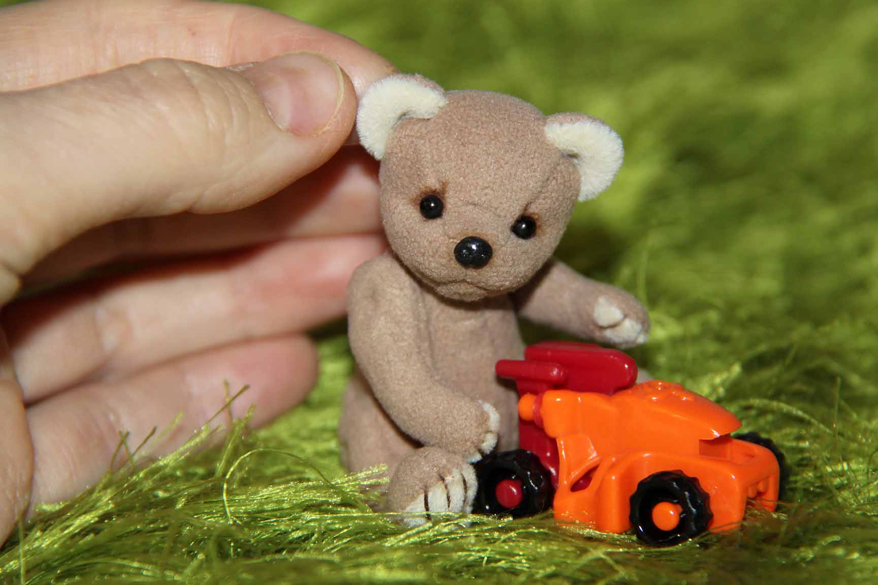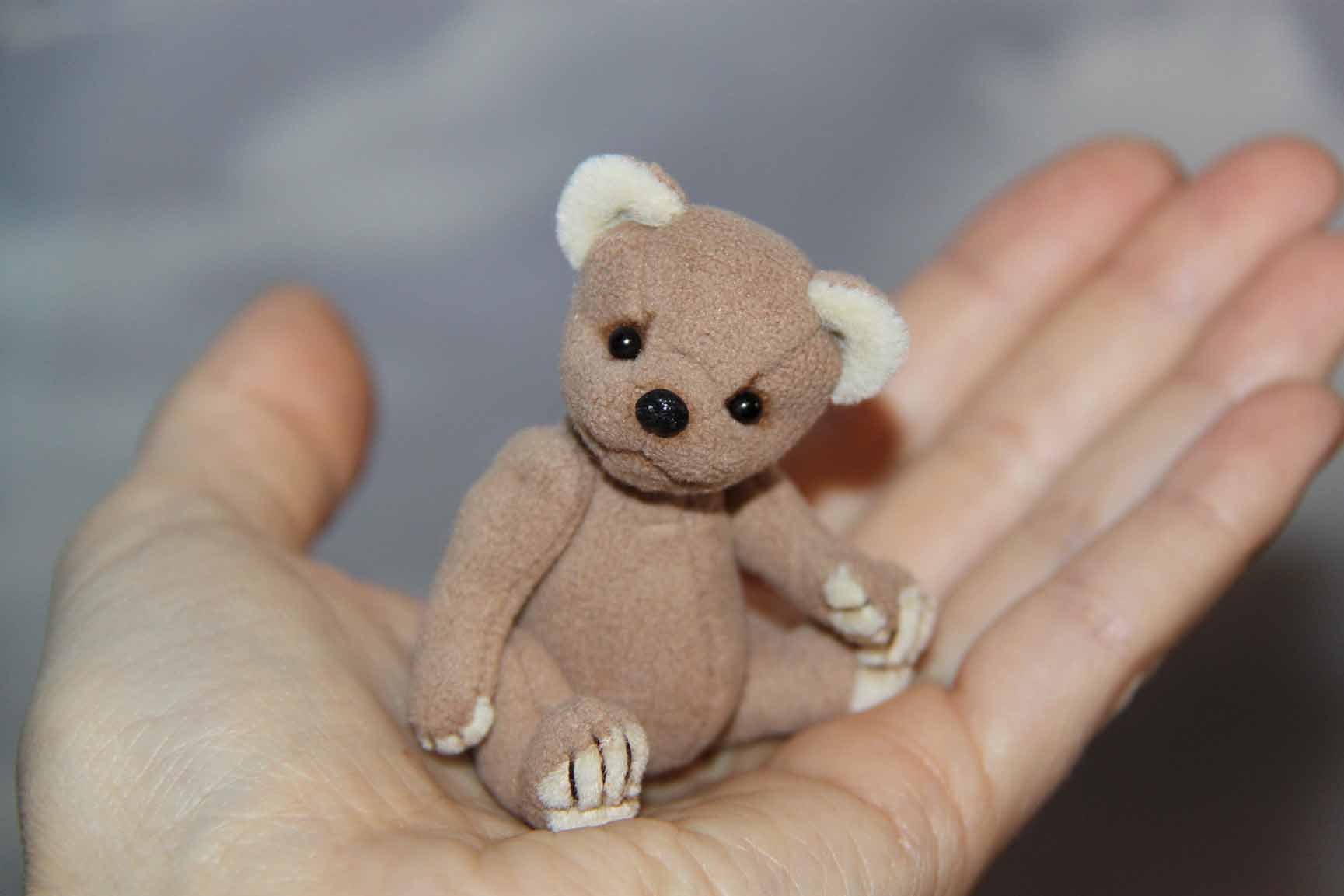 Малыш выполнен в технике тедди, голова и лапки подвижны. Рост 7 см. Самостоятельно сидит.
