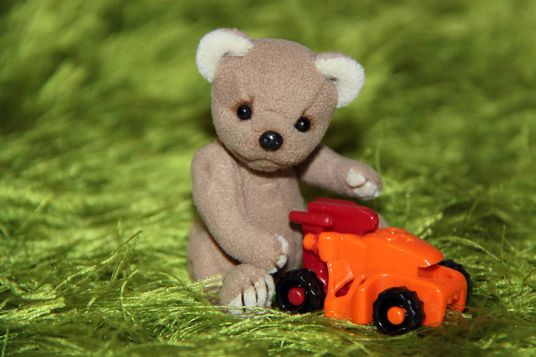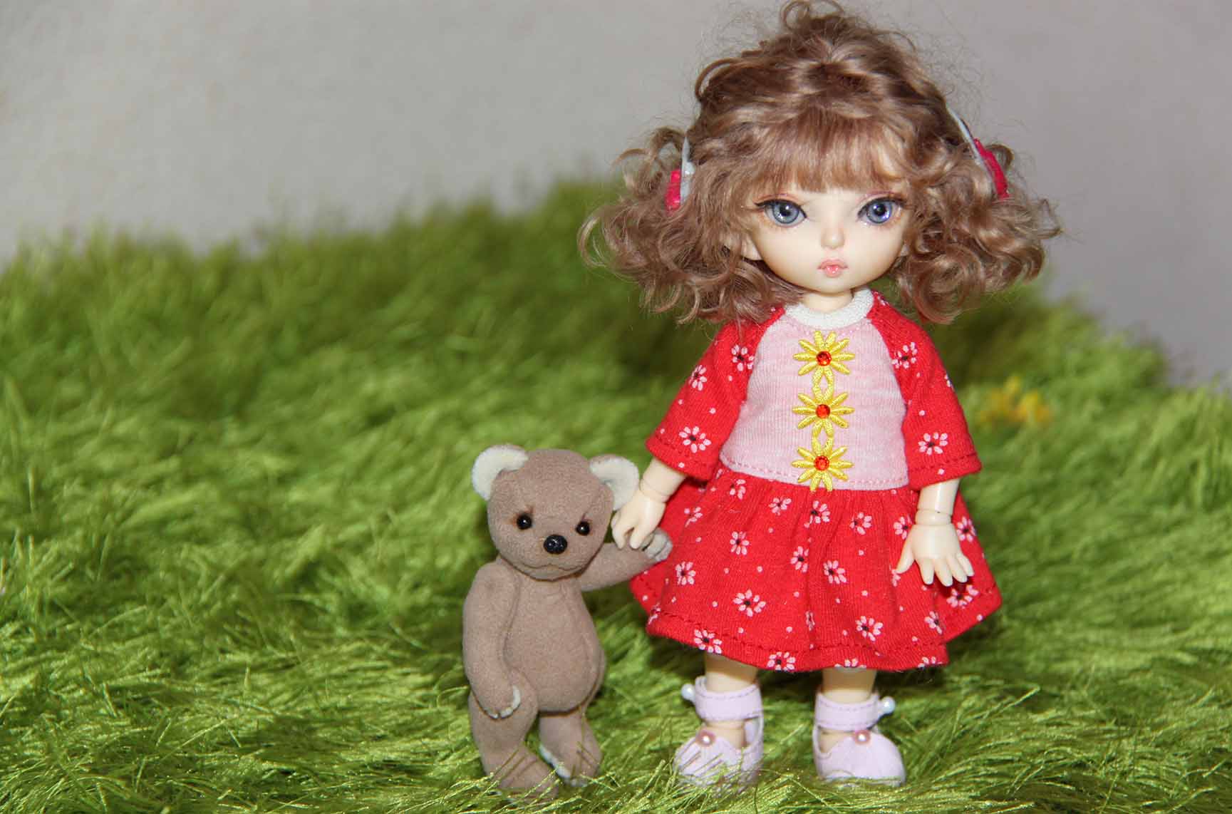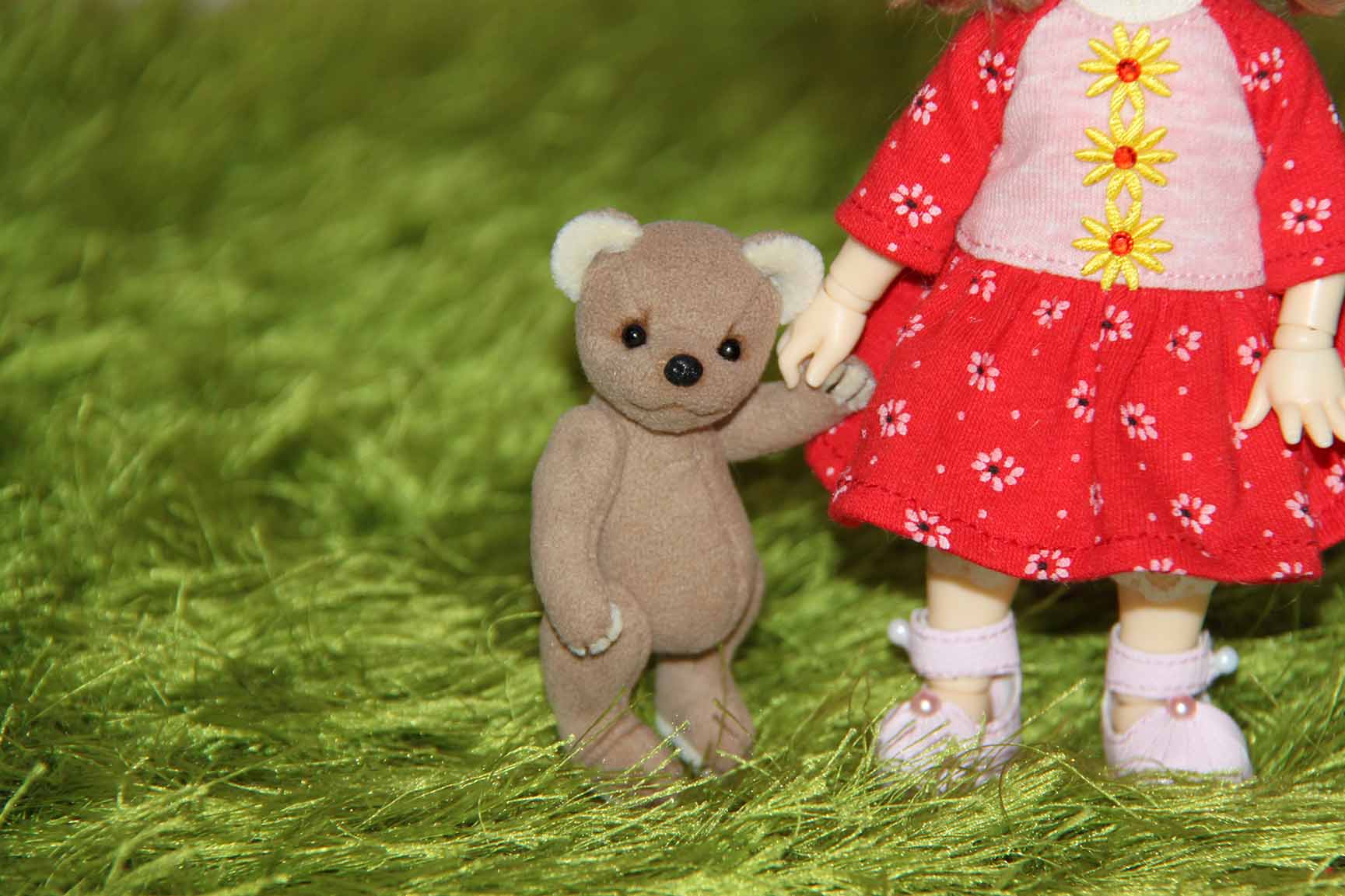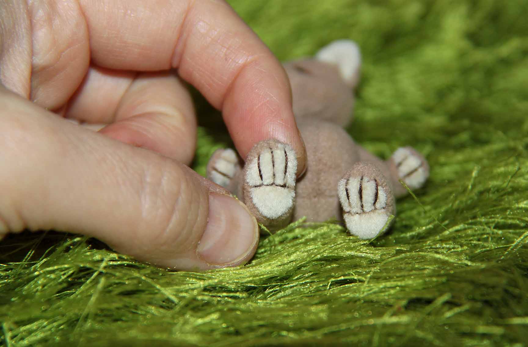 Малыш выполнен в технике тедди, голова и лапки подвижны. Рост 7 см. Самостоятельно сидит.