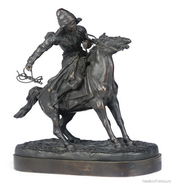 "Джигитовка" (Казак, стоящий на лошади с поднятым хлыстом). Бронза фабрики К. Ф. Верфеля по модели В. Я. Грачева. Санкт-Петербург. Высота 38 см.