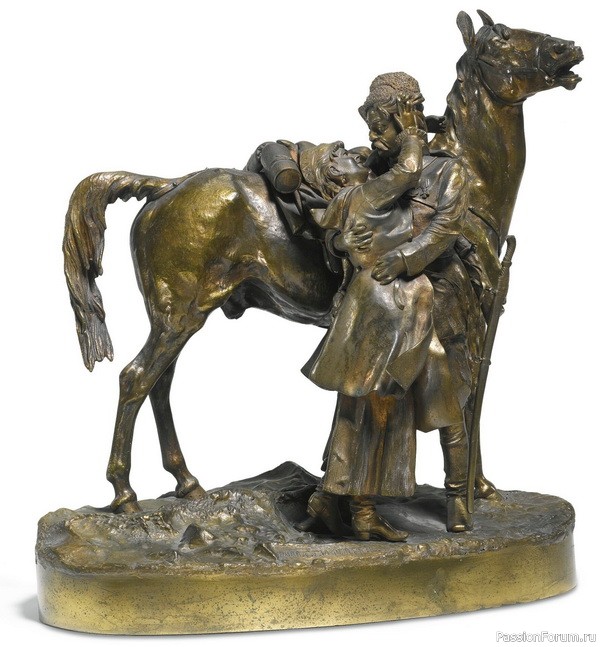 "Влюбленные казаки". Бронза фабрики К. Ф. Верфеля по модели В. Я. Грачева. Санкт-Петербург. Длина 31 см.