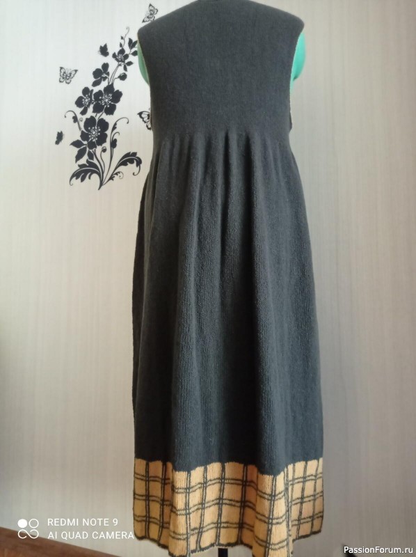 Ирина, сарафан очень легкий, ушло чуть больше 400гр пряжи. Верх шоколадного цвета, а низ горчичного. Просто захотелось разбавить шоколад, чтобы не было так приторно сладко.