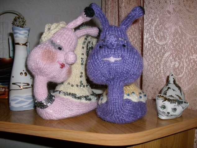 Наташа, какая Вы молодец! Очень симпатичная пара получилась… а моя улитка одна-одинешенька, пары нет и не предвидится, т к на такой «подвиг» как связать еще одну, я врядли решусь!)))