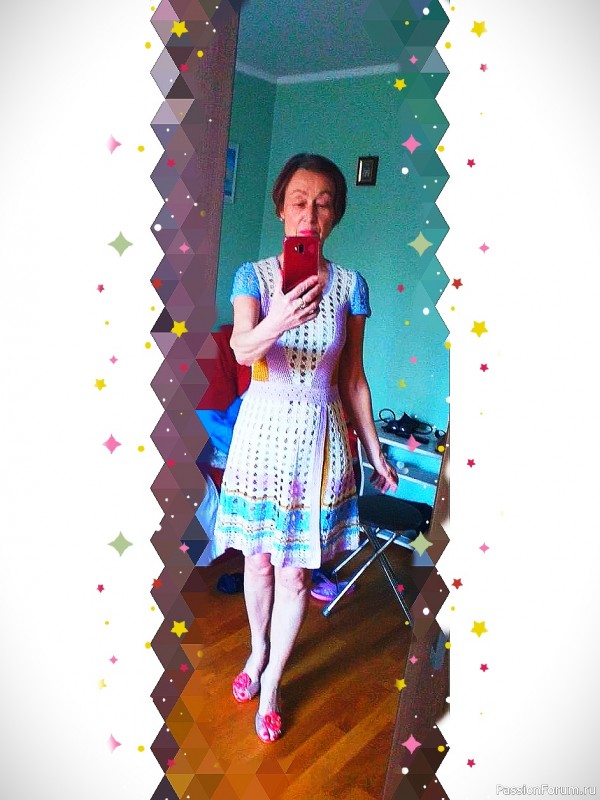 Вывязывая это платье, я видела и белые гребни волн, и синеву глубин, и золото закатов, и сиреневые рассветы, чувствовала неповторимый аромат моря, запах лаванды...
