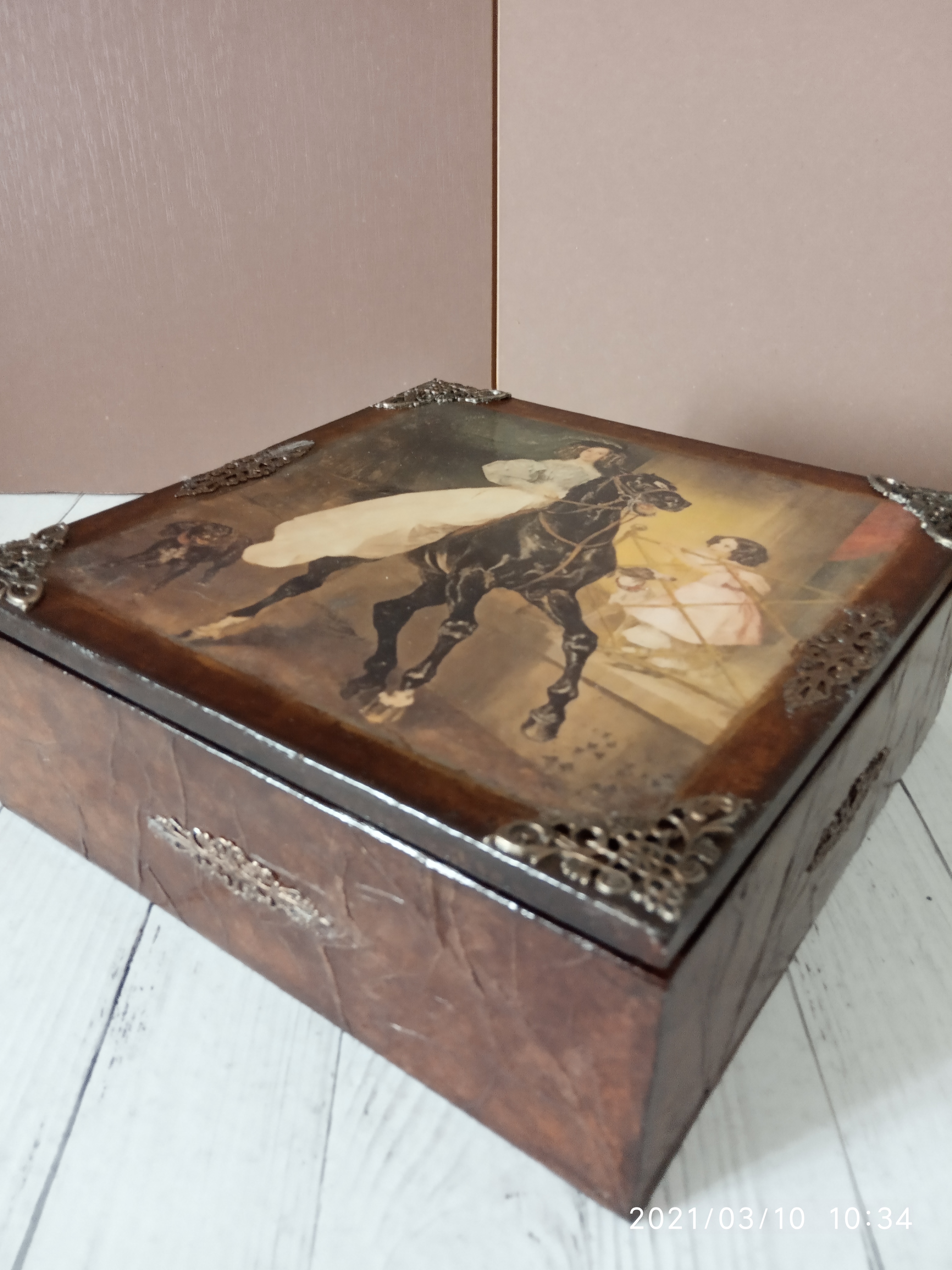 Наташа, понравилась наездница! Спокойная старинная шкатулка! Текстура и цвет хорошо сочетаются.