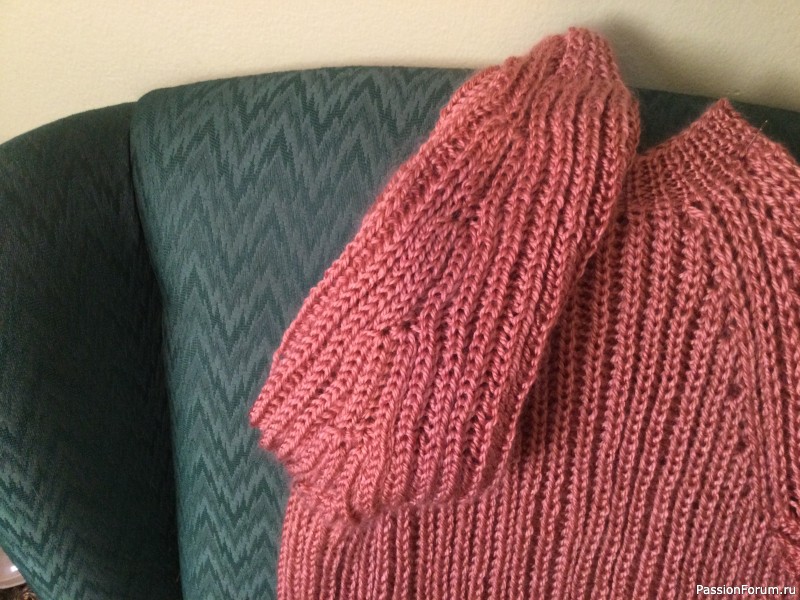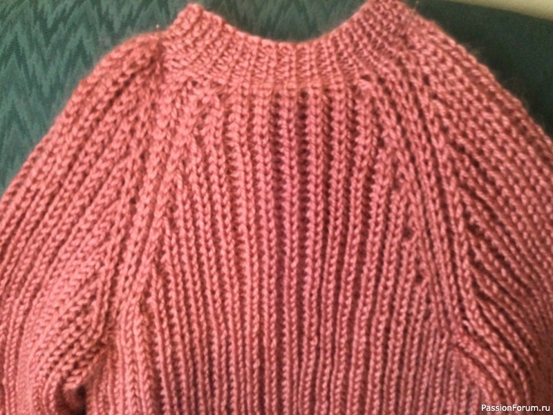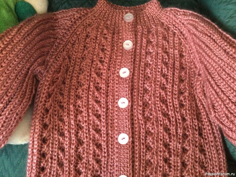 Очень добротная и красивая кофта получилась. Своего рода наследство для всех поколений. Обязательно научите со временем внучку вязать кофту. И цвет замечательный. Только не поняла зачем вы полочку отдельно вяжете и пришиваете!?