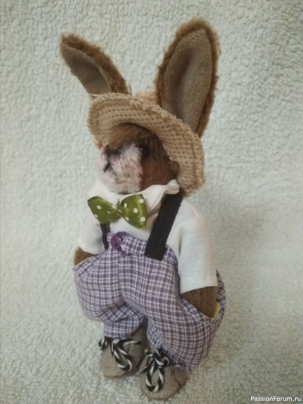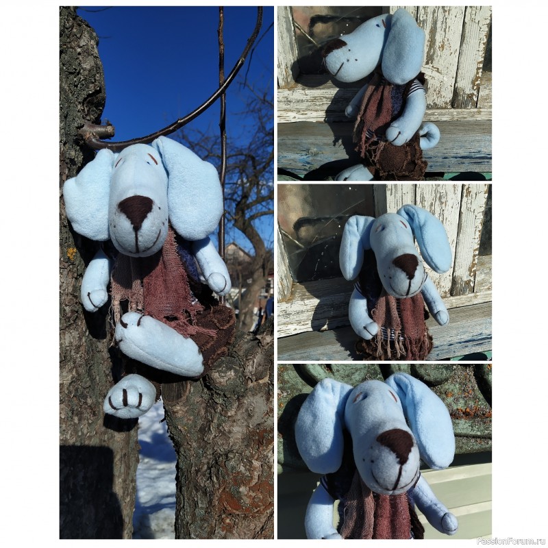 Игрушка изготовлена из вторичного текстиля. Набивка -синтепон, лапки подвижны, крепление на пуговицах.
