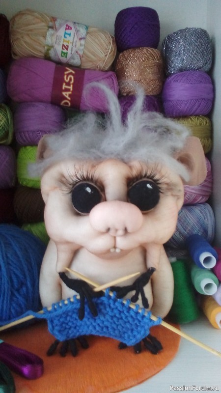 Материалы: джинса и трикотаж, вышивка от старой кофточки, глазки — кабошоны, обшитые бисером, ротик вышит бисером, ручки и хвостик из толстой пряжи, в ручках котя держит рыбку (от брелка), наполнитель — холофайбер. На джинсе нарисовала котика. Глаза: приклеила кабошоны на фетр, обшила бисером, приклеила Моментом прозрачным к серому кожзаму, который пришила к джинсе. Пришила пуговку-носик, вышила бисером рот. Нитками вышила усы и брови. Вырезала котика. Вырезала вышитый узор из старой марлевой кофты и вышивку пришила на тело кошечки. Соединила лицом друг к другу переднюю джинсовую сторону с куском трикотажа, соединила иглами и сострочила на швейной машине, оставляя отверстия для рук и набивки. Вывернула, набила тело холофайбером. Из толстой пряжи сделала руки и хвостик — пряжу заплела в косы. Пришила руки, зашила отверстия, пришила хвост. Руки соединила подвеской-рыбкой. Голову украсила ободком с цветами. Вот такая кошка Фрося у меня получилась. Млекопитающее.