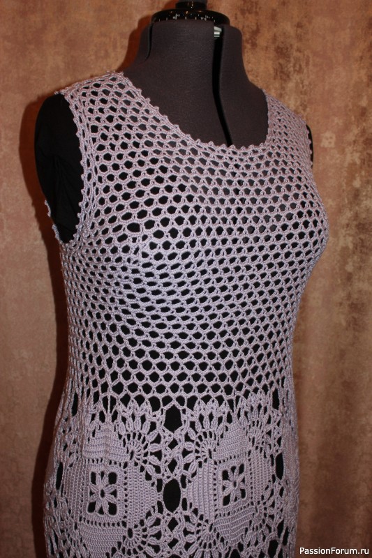 Ира, благодарю сердечно! Платье, хотя и весит 500 г, к счастью, получилось не громоздким. Но пряжи еле-еле хватило.