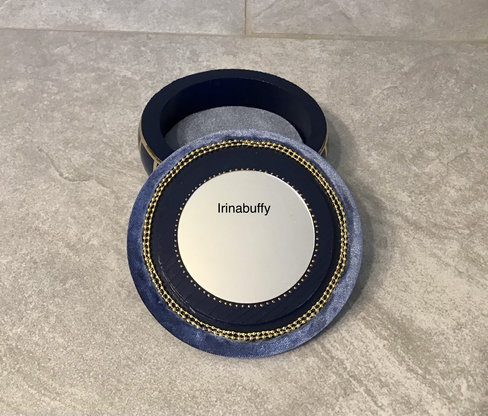 Всем привет!Очень люблю маленькие шкатулочки декорировать.Родилась очередная малышка.Главную роль в этой работе сыграл бархат,и снаружи и внутри.Использовала материалы: серо- голубой бархат,синяя акриловая краска,запекаемая глина,зеркало,шариковая цепочка,контур,ножки,витражная лента,накладка,лак и эпоксидная смола.Рада всем заглянувшим!