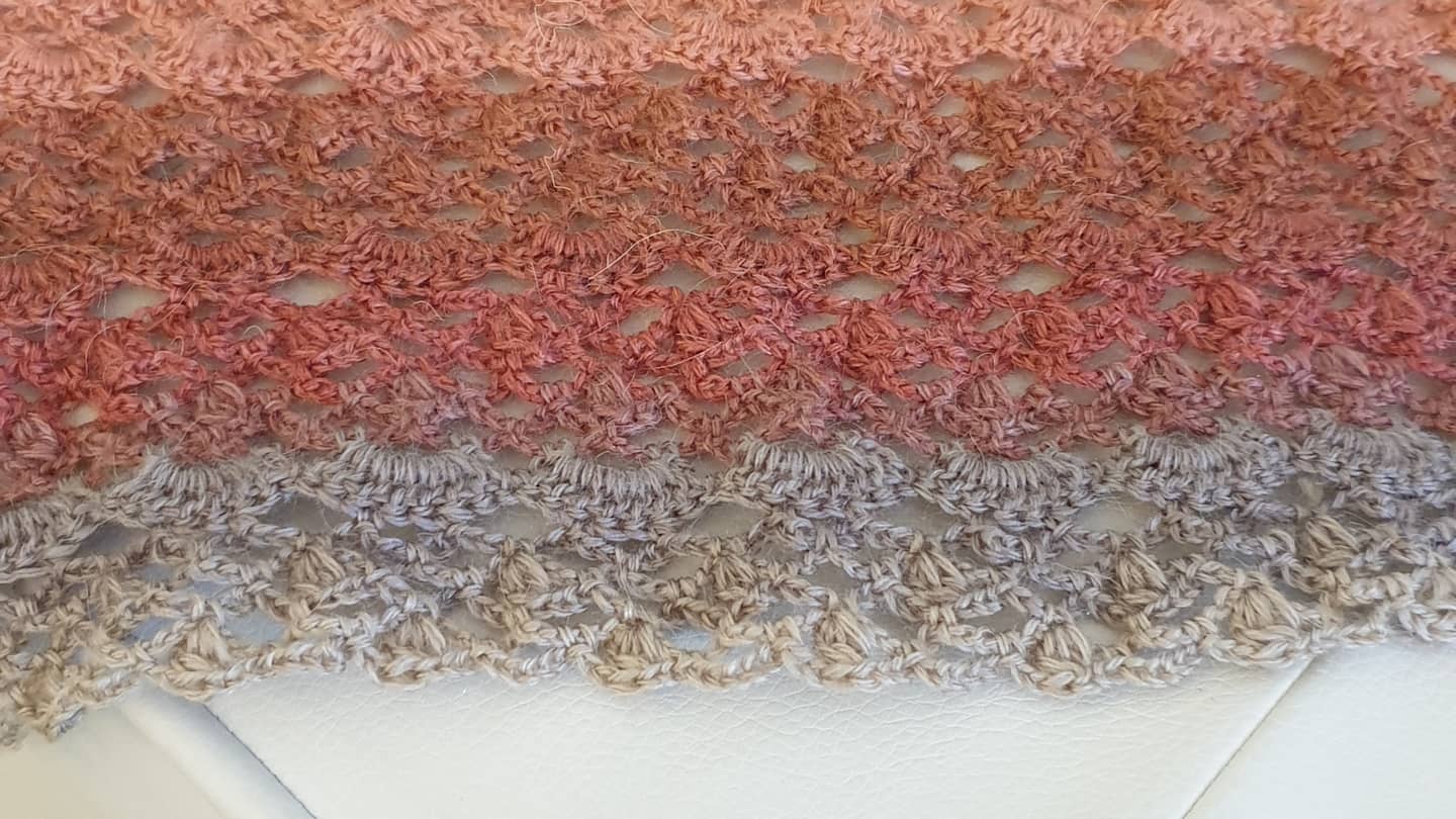 Шаль отличная получилась.Цветочки очень красивые, унас тоже такие растут.Хорошего вам отдыха!!!