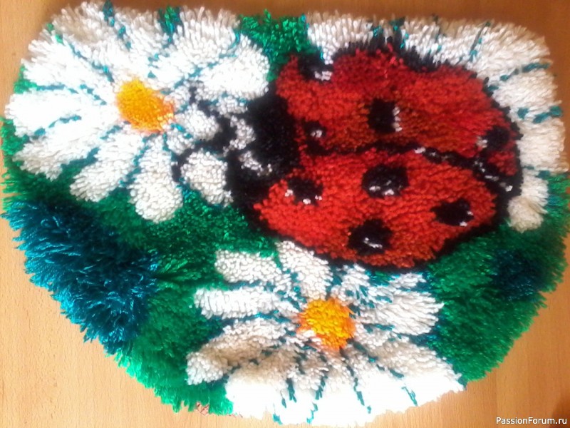 это был мой первый коврик и его я сделала за 7 дней) очень уж хотелось посмотреть, что получится) остальные даже дольше делала.