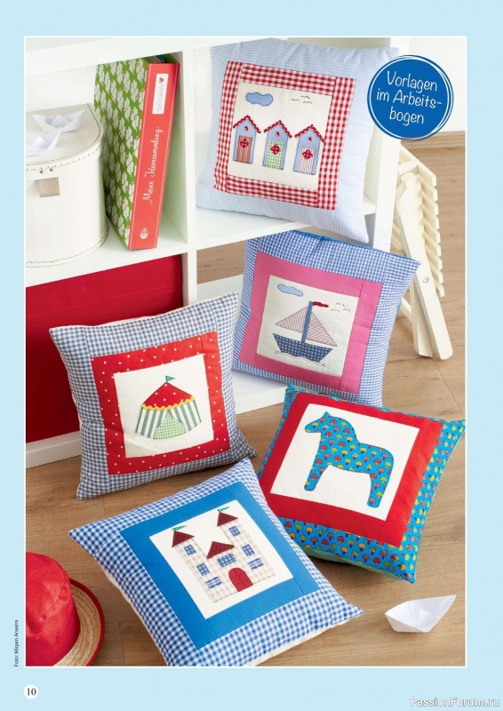 симпатичные подушки, выполненные в техниках пэчворк и квилтинг, а также настенные панно,