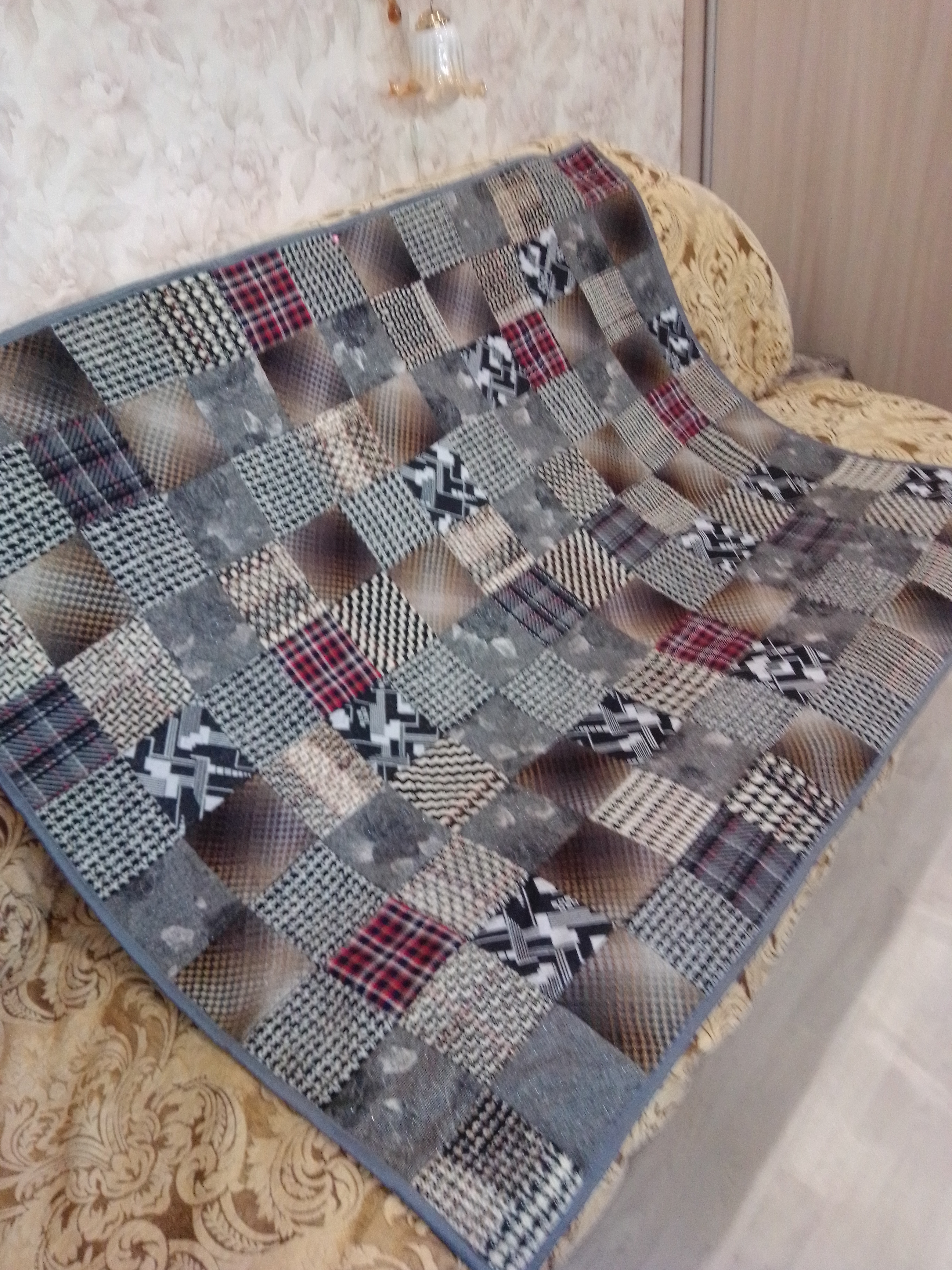 Еще раз спасибки!!! У меня техника исполнения пледов и одеял одинаковая. А внешний вид получается разный из-за выбранной ткани. В этом пледе тоже ткань разная по фактуре и толщине, а в готовом виде утилизация получается симпатичная… Очень хочется взглянуть на Ваш плед, я знаю, что скромничаете...
