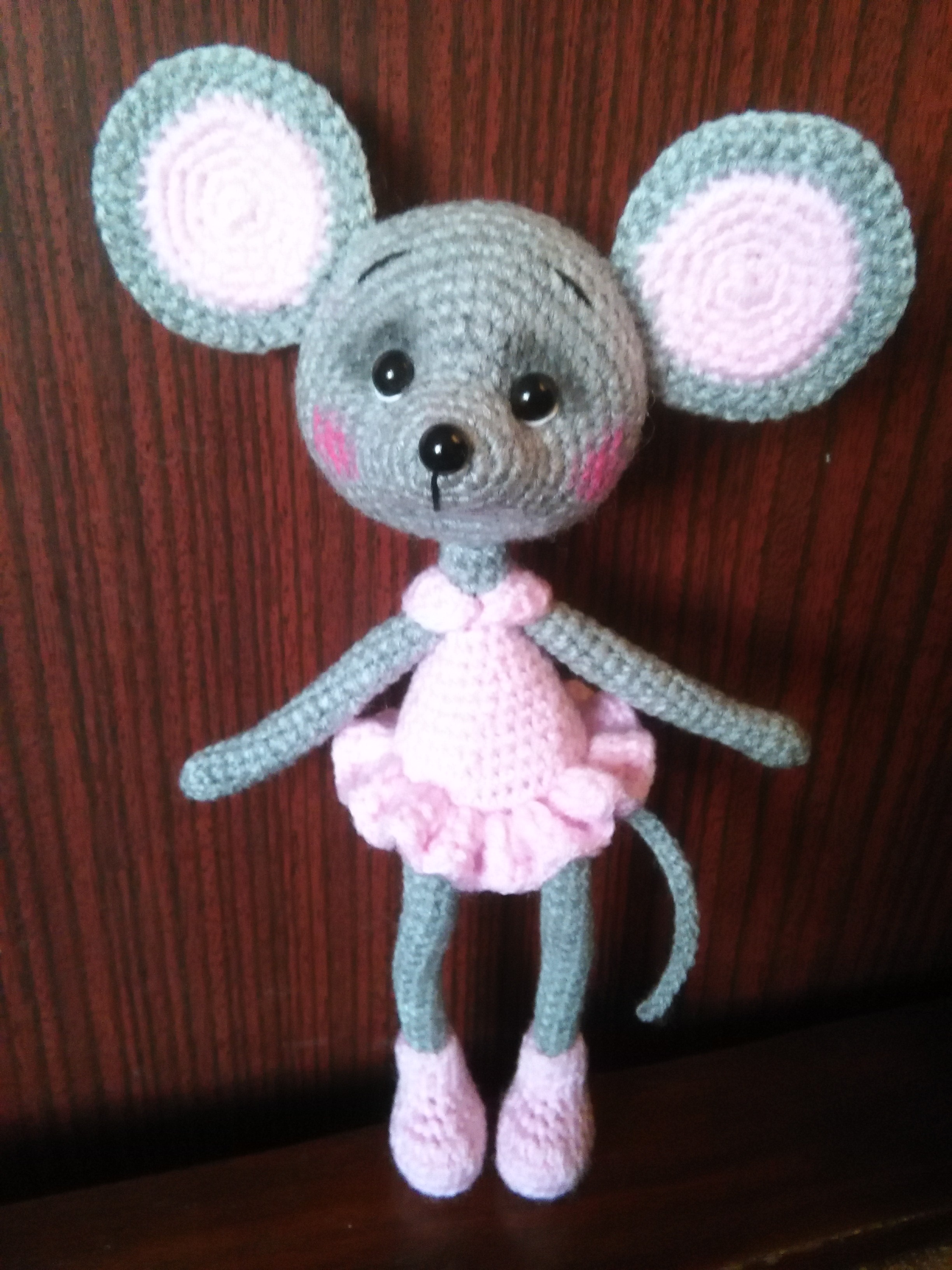 Понемногу начинаю вязать игрушки и здесь, в сельской глубинке) Представляю вашему вниманию Мышуню) Игрушка связана по моему описанию, пряжа Ярнарт беби, наполнитель холофайбер, ножки армированы синельной проволокой, рост 22 см.