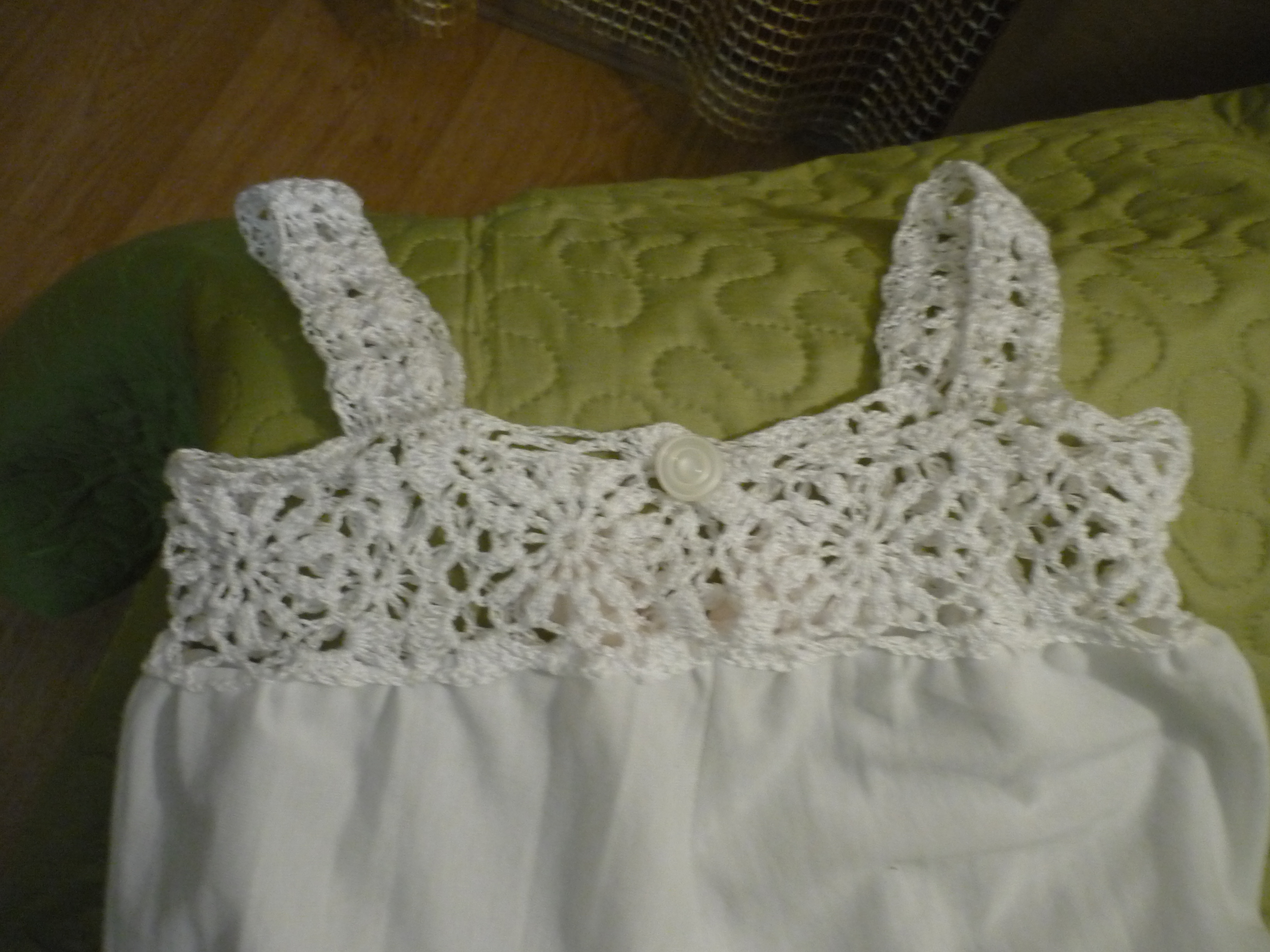 Милый.нежный сарафанчик.Знаю сколько работы при вывязывании квадратиков.Много таких вязала.Но я свяжу для внучки подруги проще, обвяжу полотно каймой.и будет ляпота!!! Спасибо за идею!!!